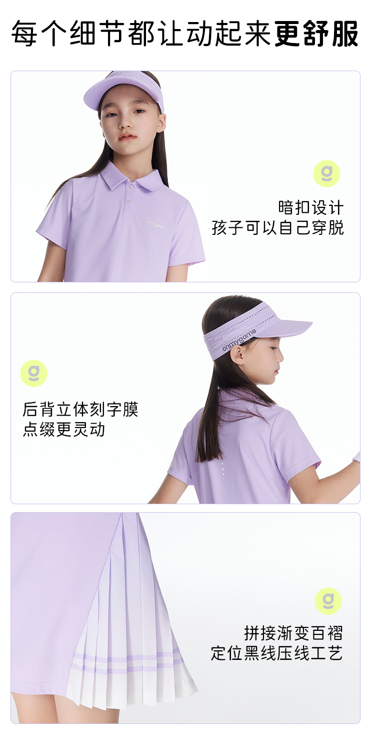 onmygame 男童短袖POLO衫儿童网球运动T恤夏季凉感透气上衣