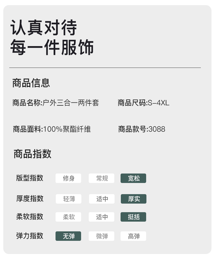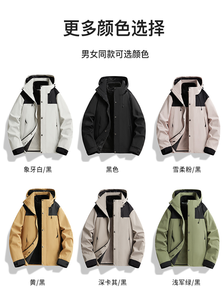 【酷然】冲锋衣男女三合一可拆卸外套 秋冬季户外防风防水加绒登山服