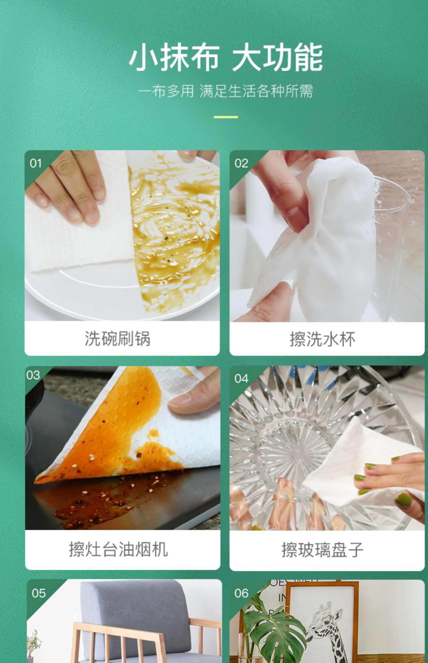 溢爱卷式懒人抹布50段*5卷干湿两用不沾油厨房一次性洗碗布次抛抹布 柔软细腻 吸水能力好 不掉屑等特性 抽取式设计 取用方便