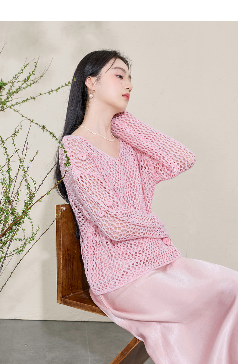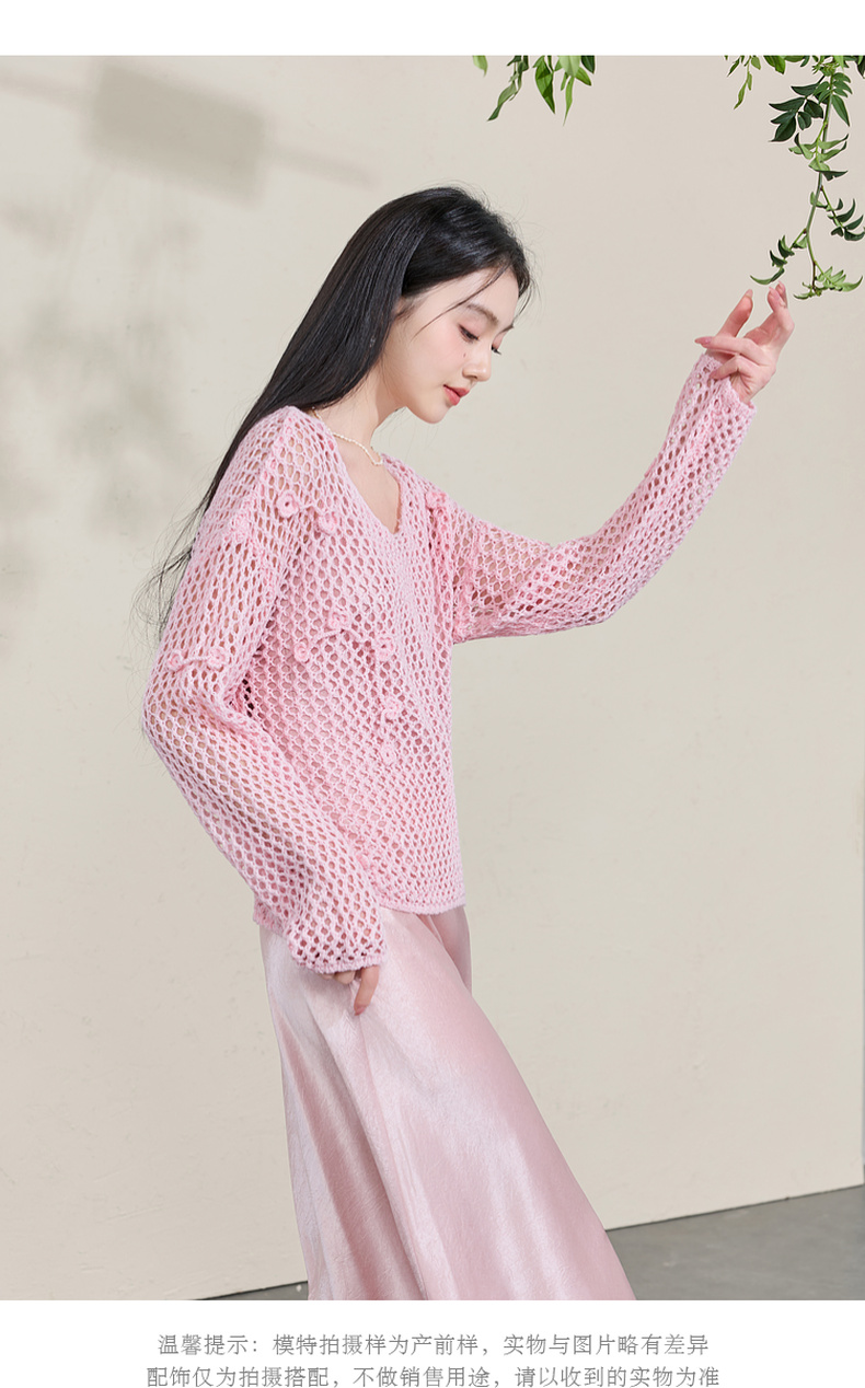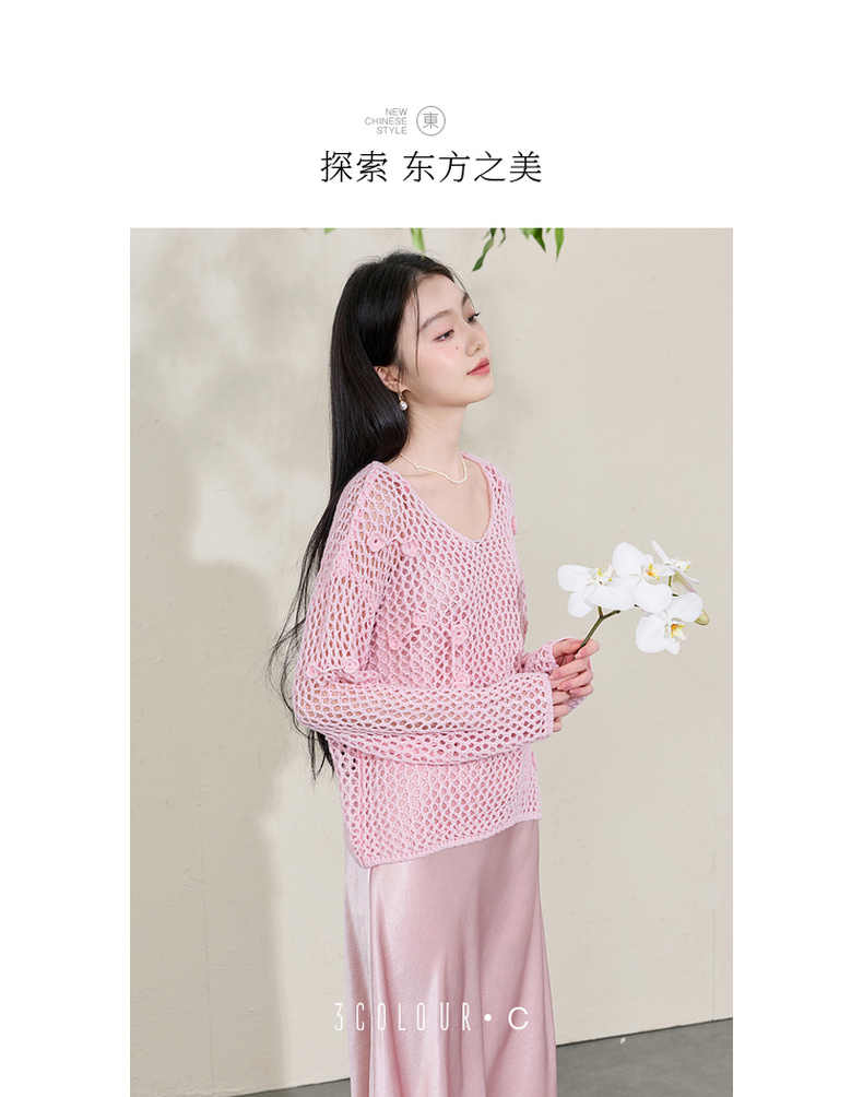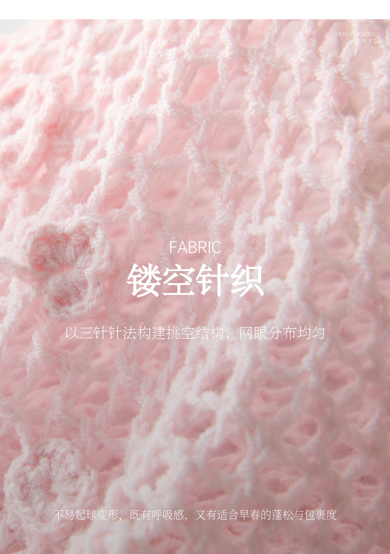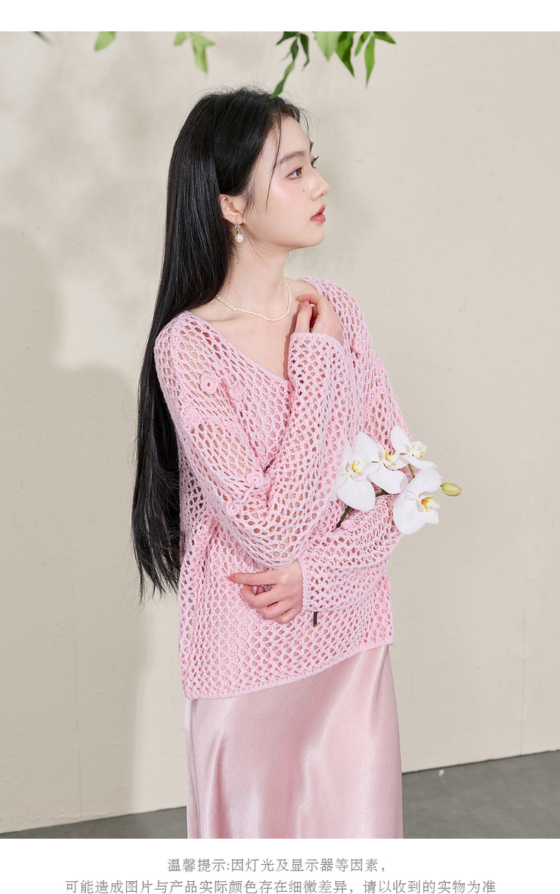 三彩【梦里浮花】2026春季新款新中式针织衫镂空花朵罩衫C