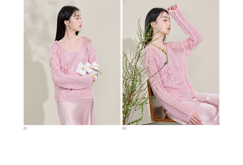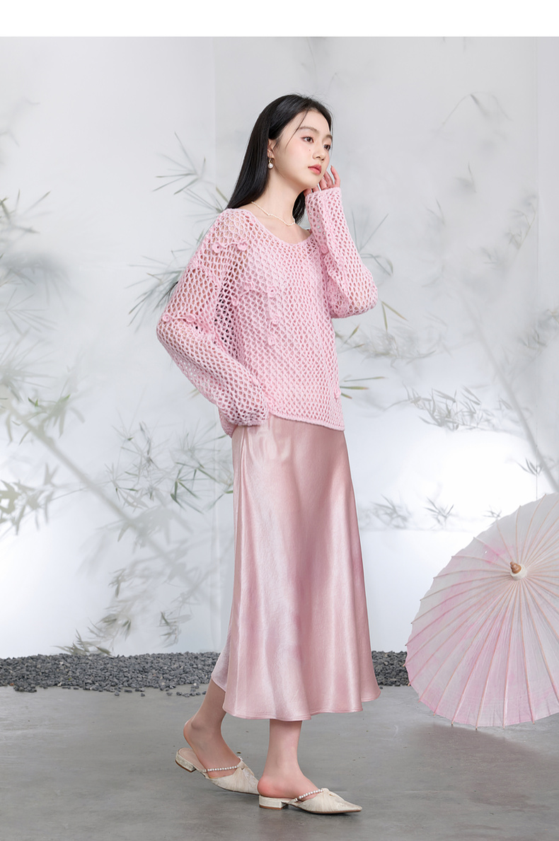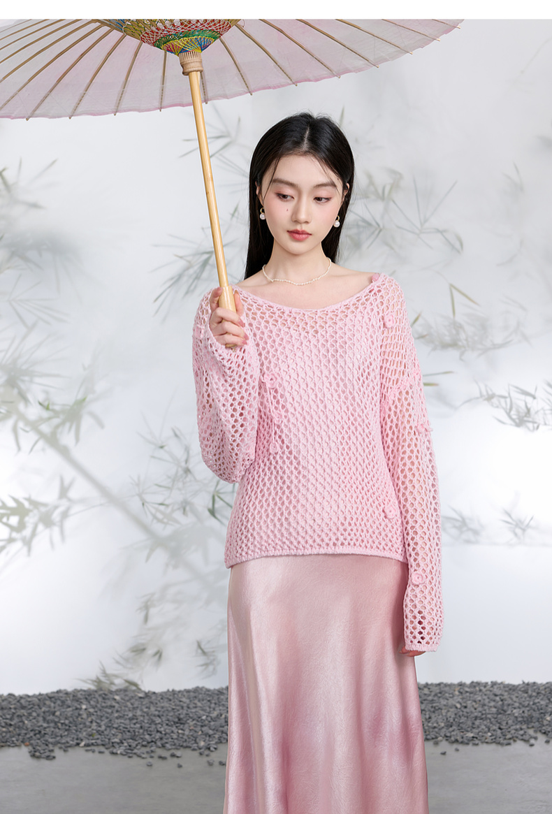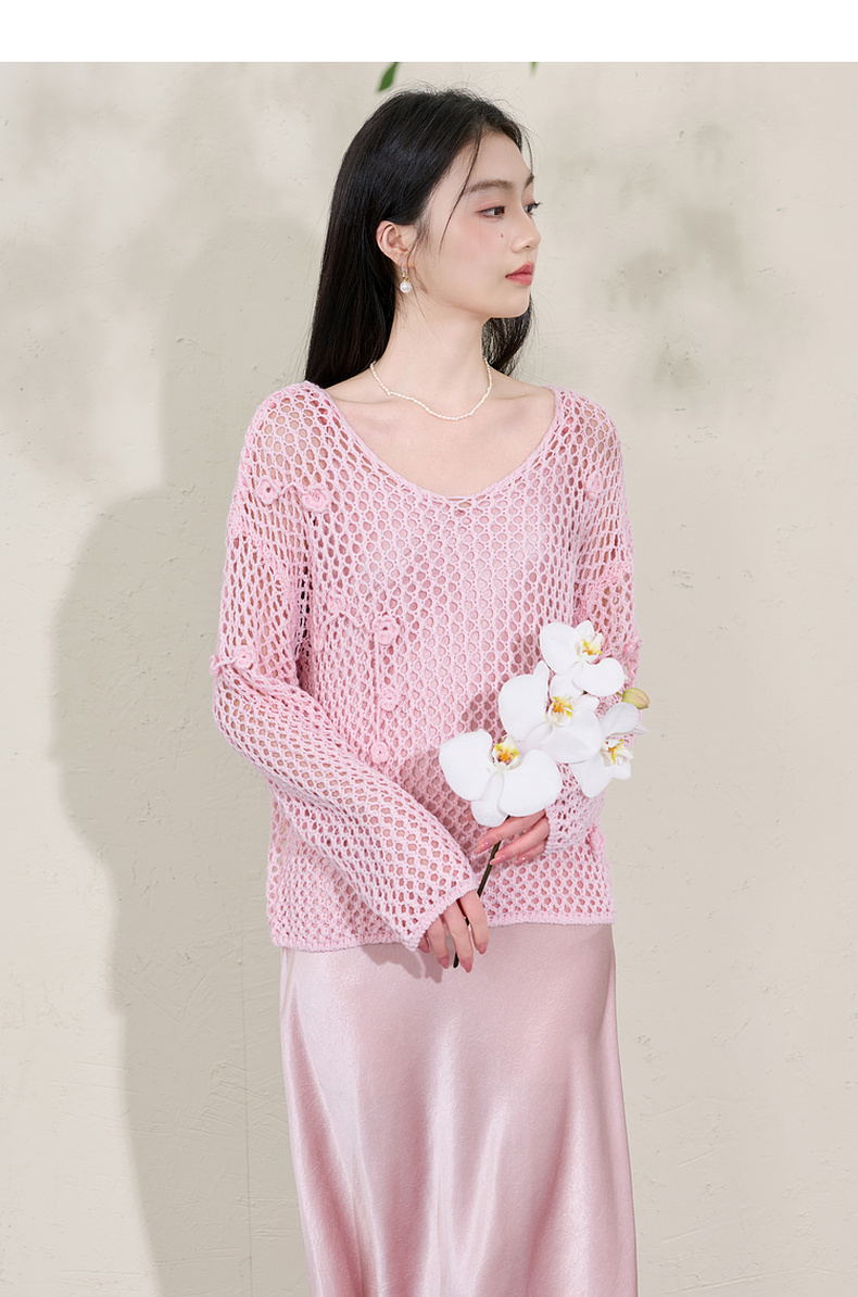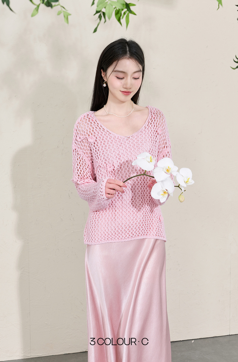 三彩【梦里浮花】2026春季新款新中式针织衫镂空花朵罩衫C