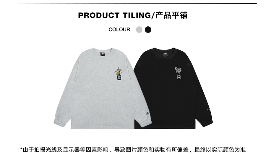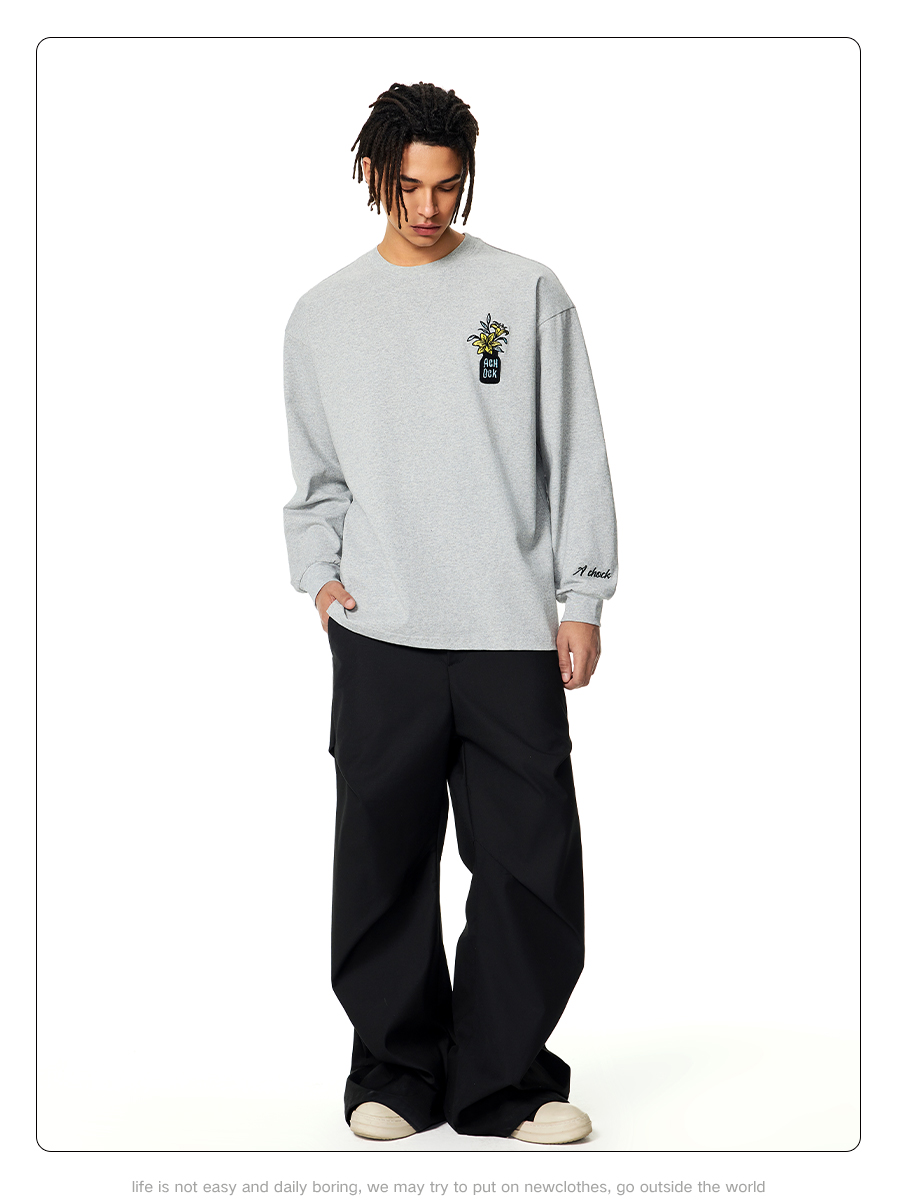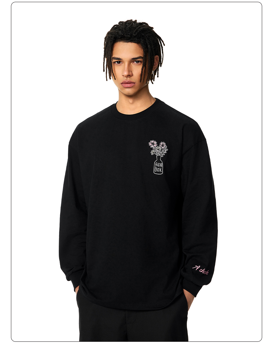 【Achock官方店】花卉刺绣长袖T恤男女新款潮牌美式高街上衣情侣