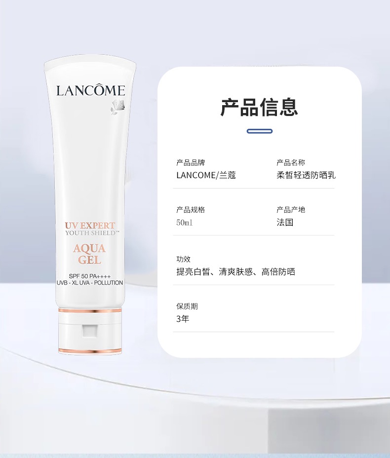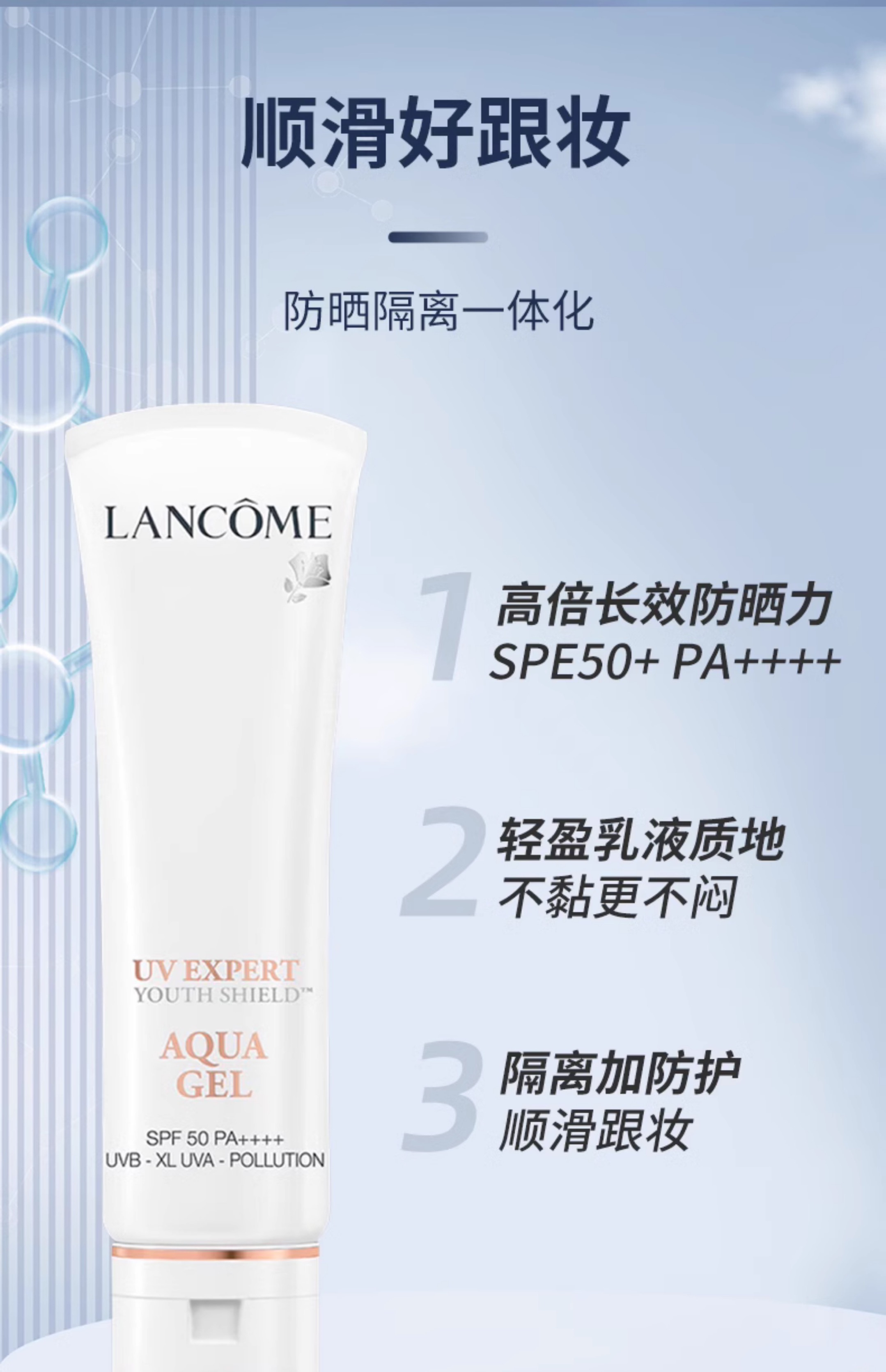 兰蔻清透水漾防晒乳SPF50PA++++(化学防晒)【专柜】 50ml/支(非质量问题不退换)