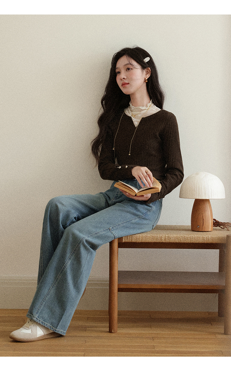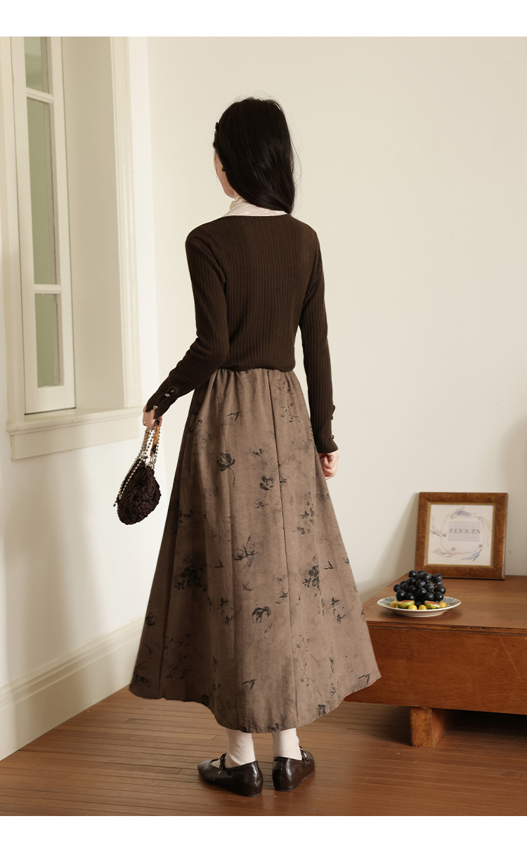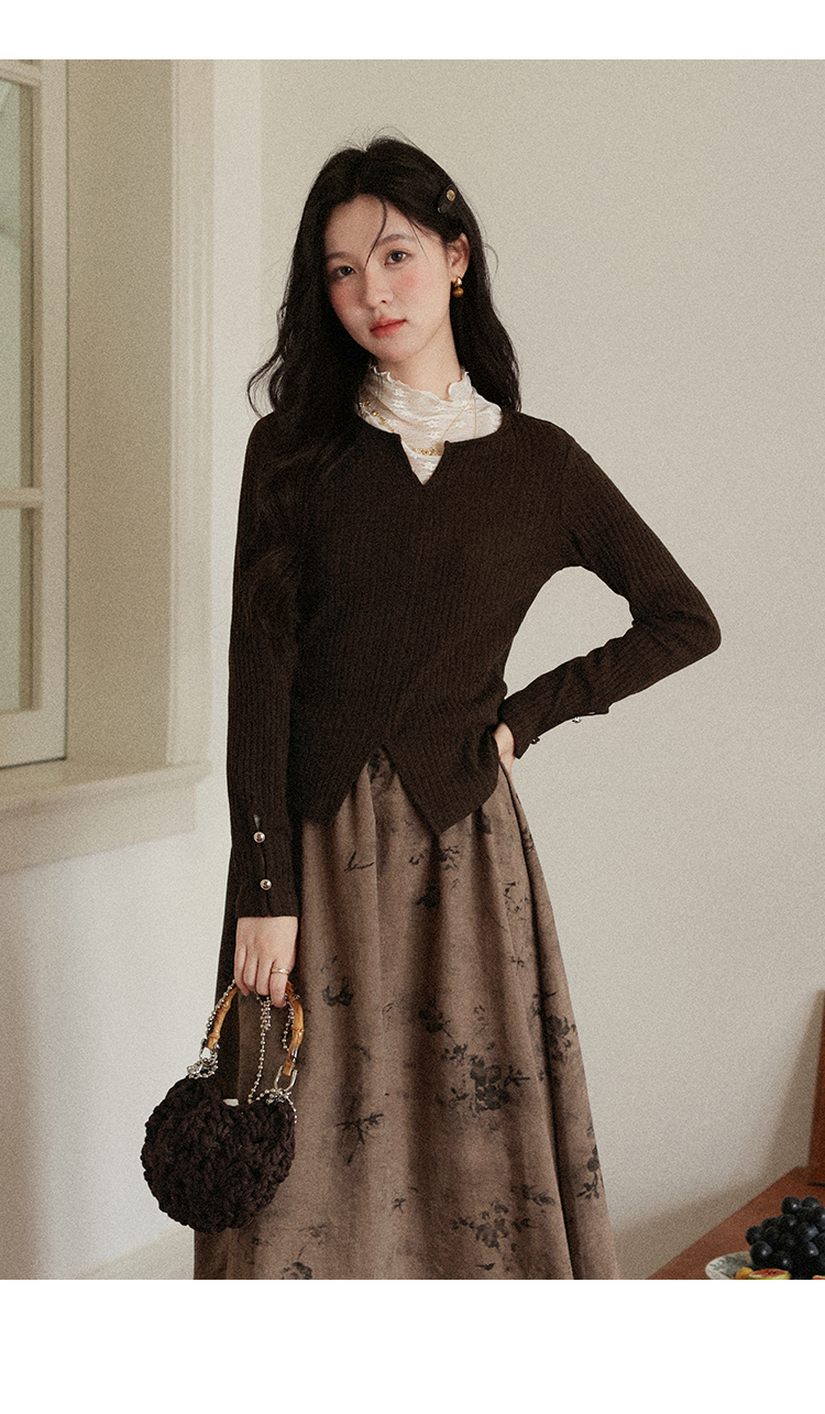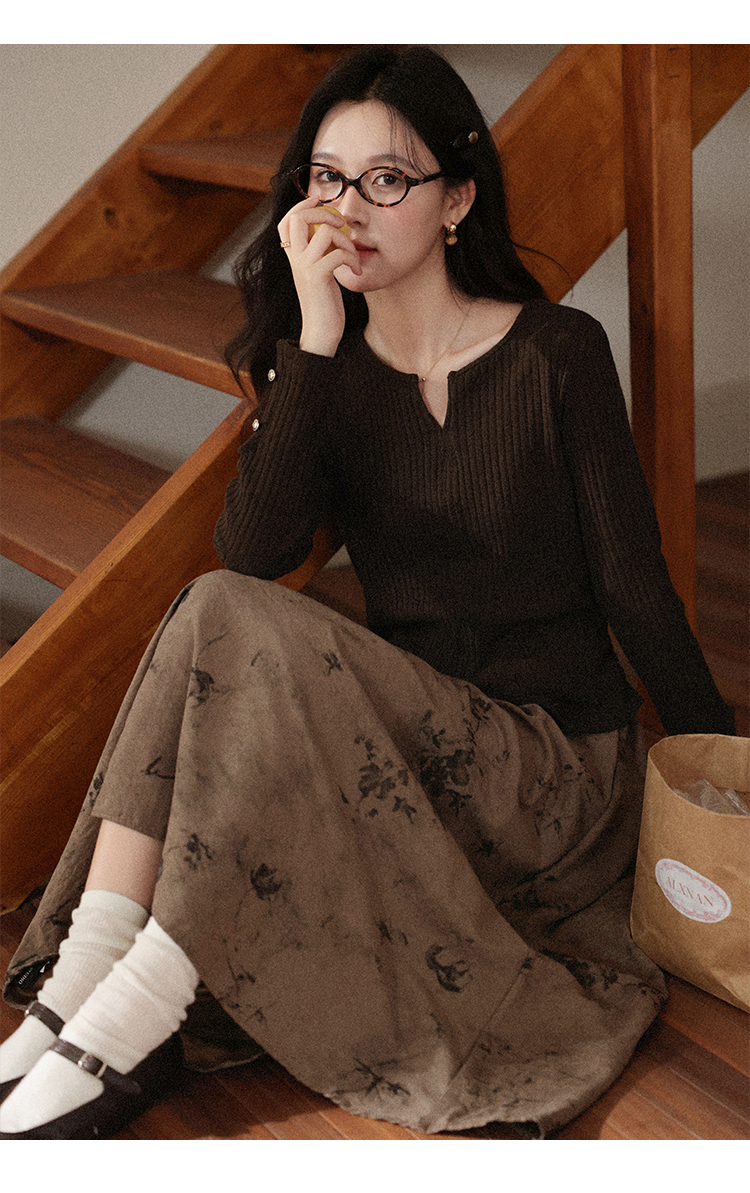 鹿向南「巴黎拿铁」早秋咖色长袖针织衫女设计感小众修身显瘦上衣