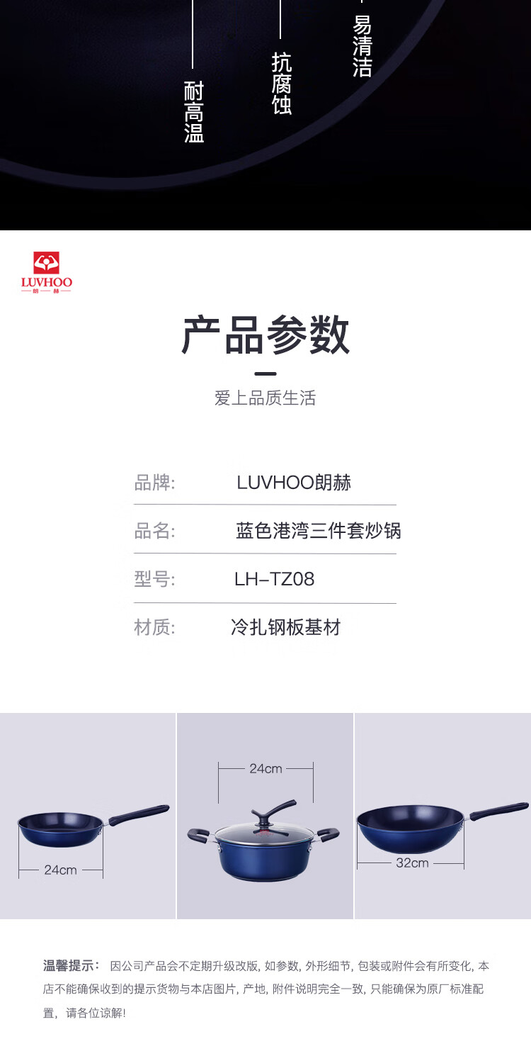 朗赫 蓝色港湾锅具三件套 LH-TZ08