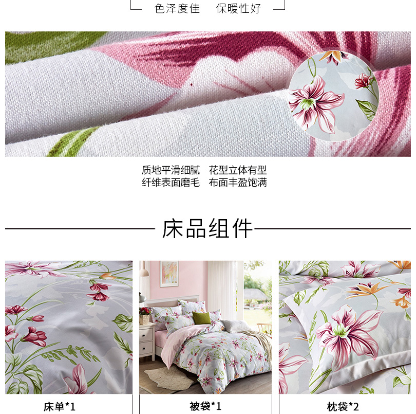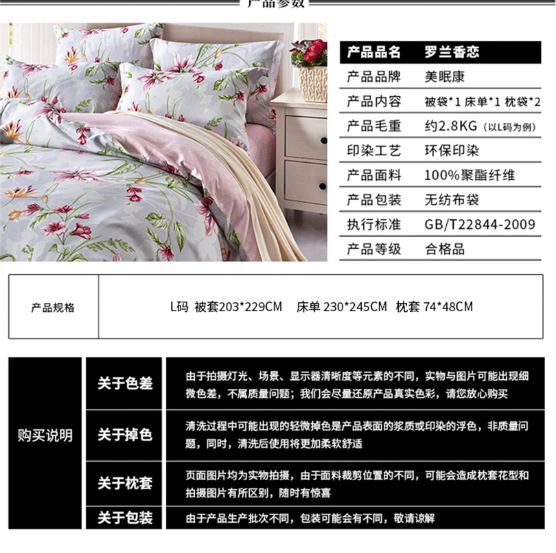 多喜爱 纯涤磨绒套件四件套罗兰香恋203x229cm