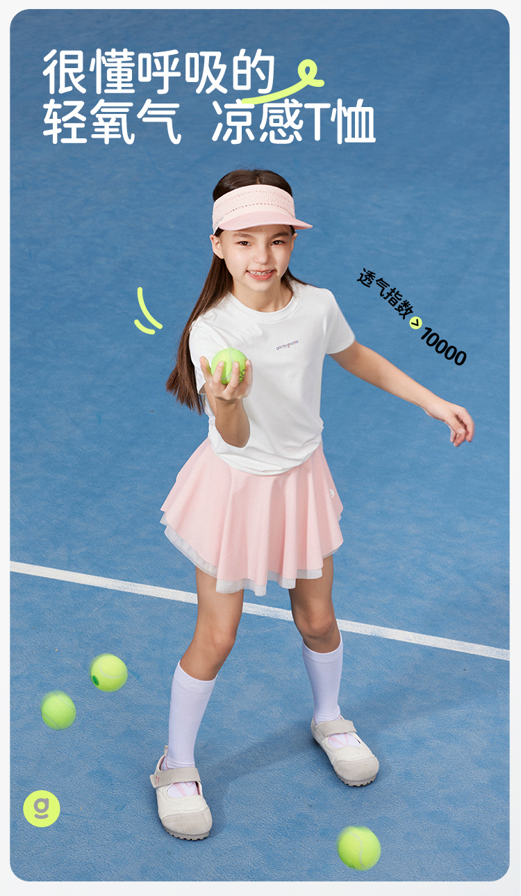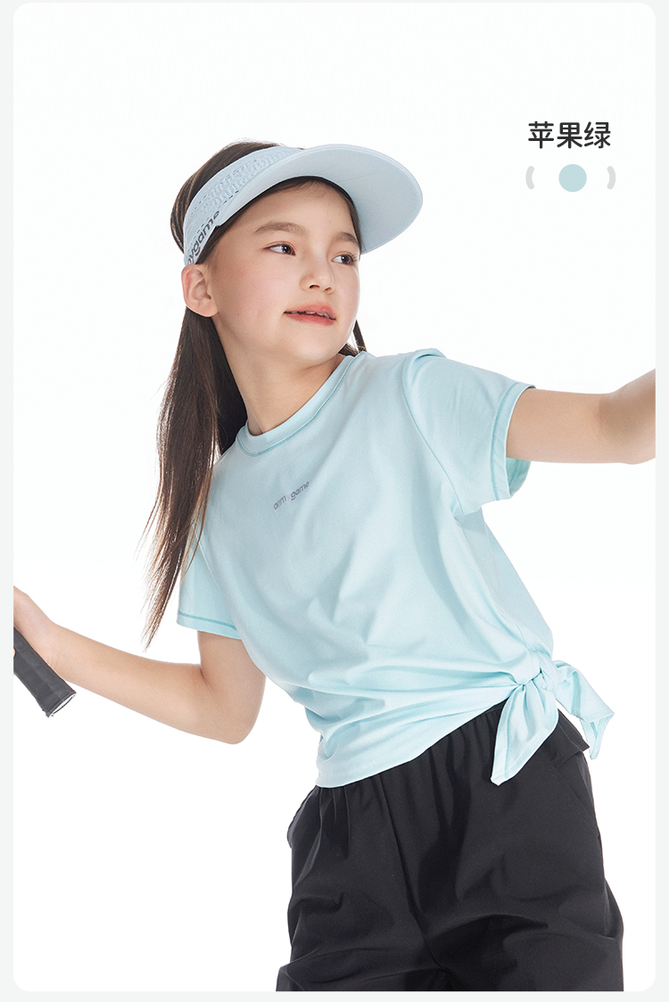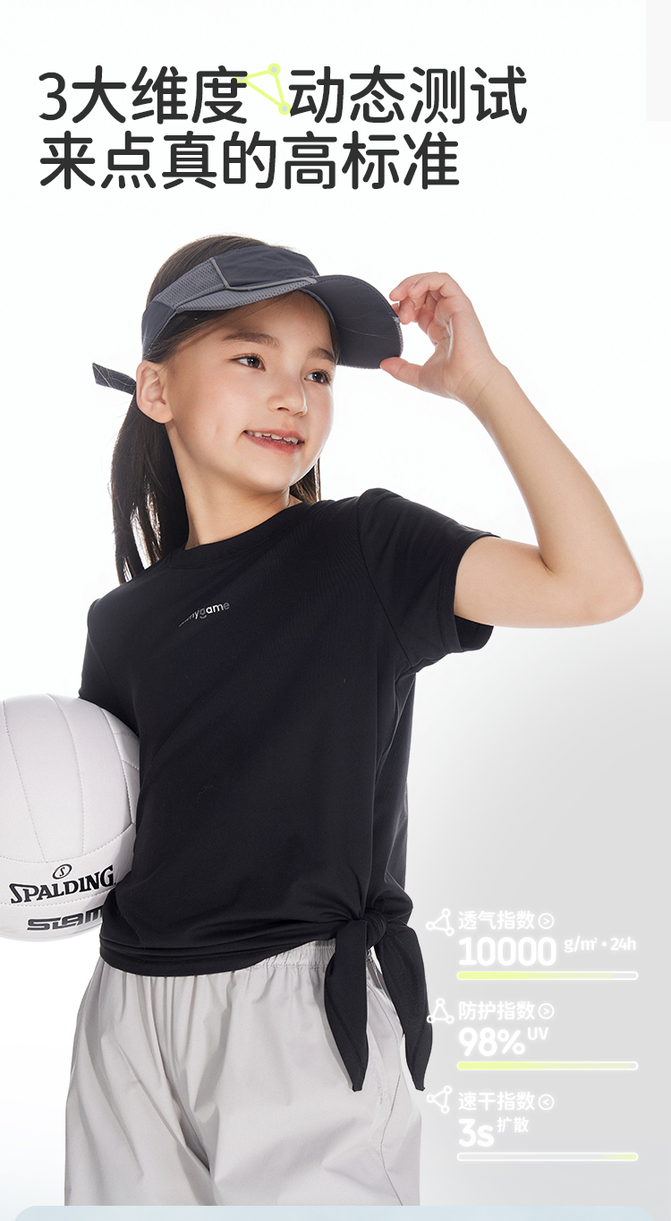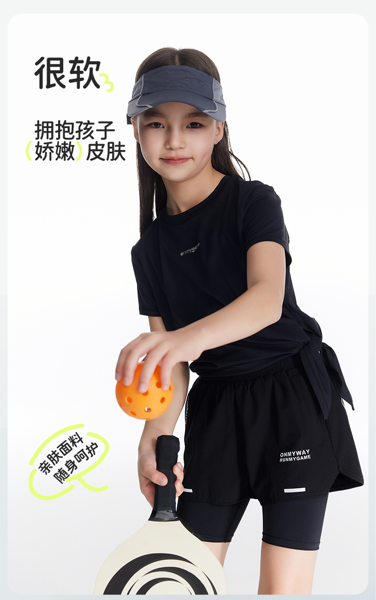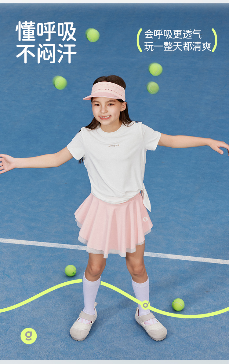 onmygame 女童短袖t恤夏季防晒凉感儿童超轻透气运动上衣2024新款