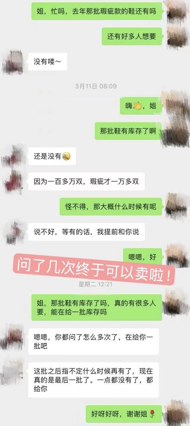 一个爆款一年卖100多万双,微瑕品要一万多双,不足1%