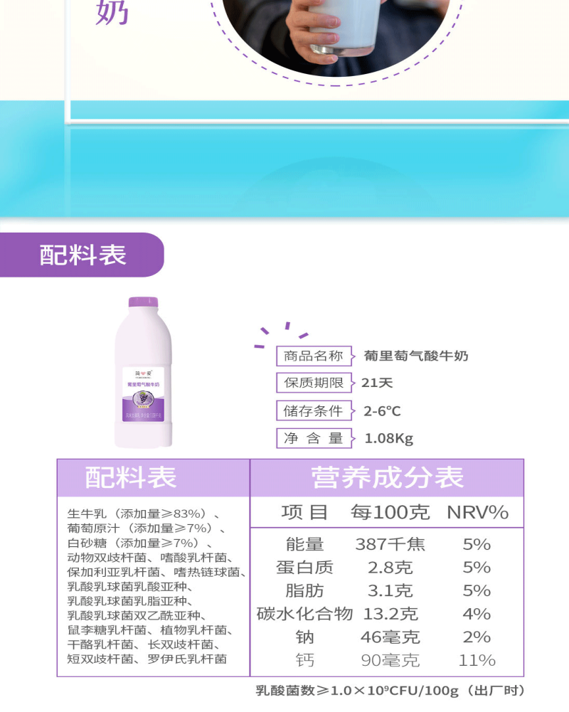 简爱®️葡里萄气酸牛奶全家桶1.08kg*3瓶