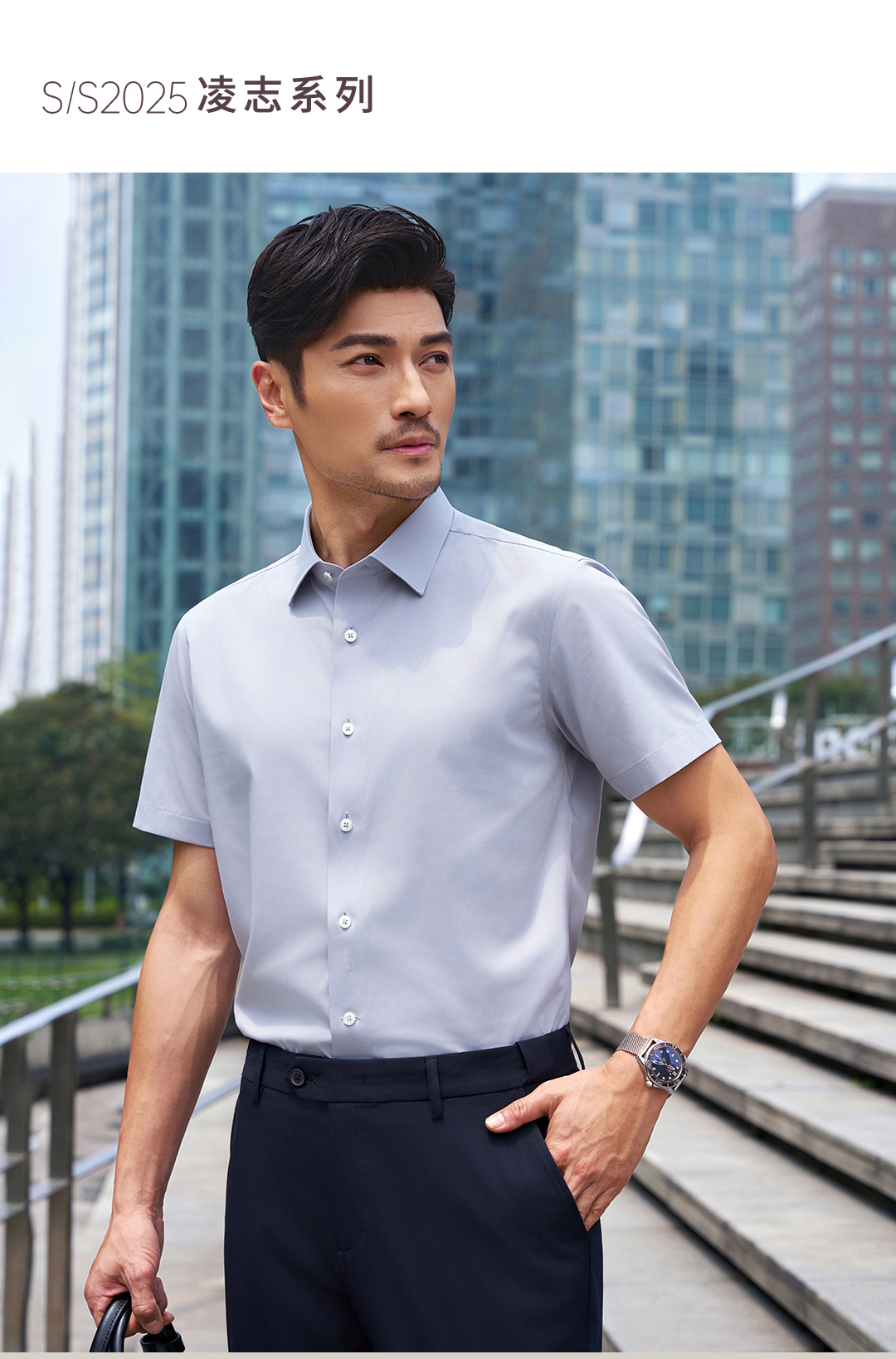 【凌志八号]】铜氨丝莫代尔冰凉抗皱透气短袖衬衫255B0F618S