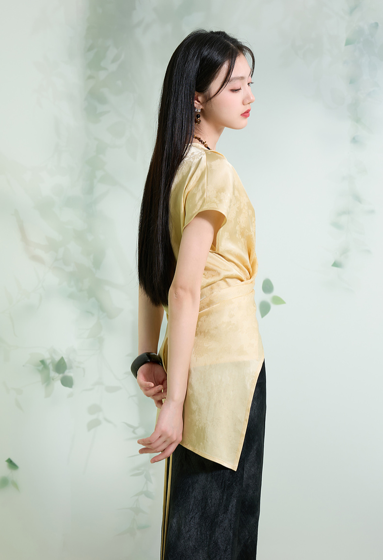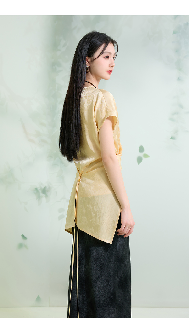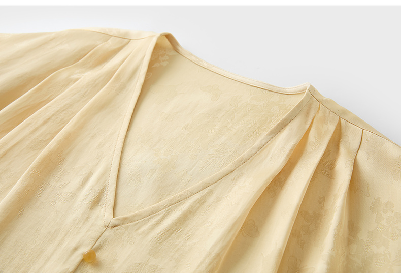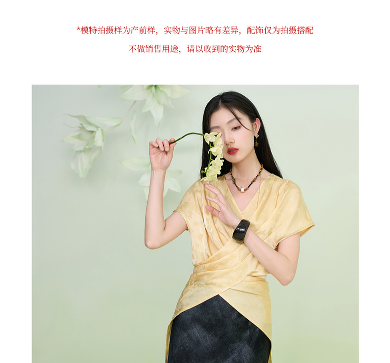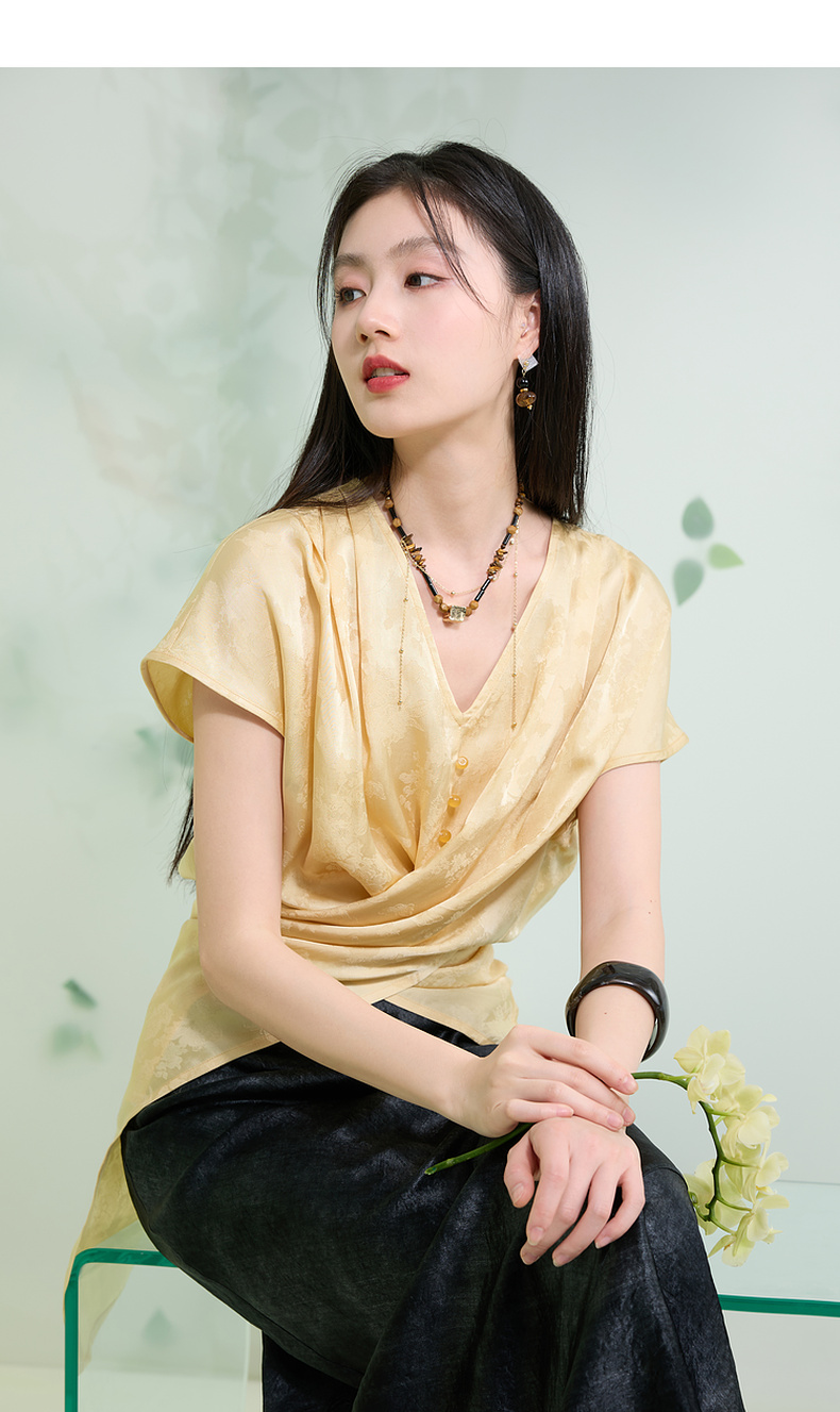 三彩【玉凝烟岚】2025夏季新款新中式莱赛尔衬衣V领绑带收腰C