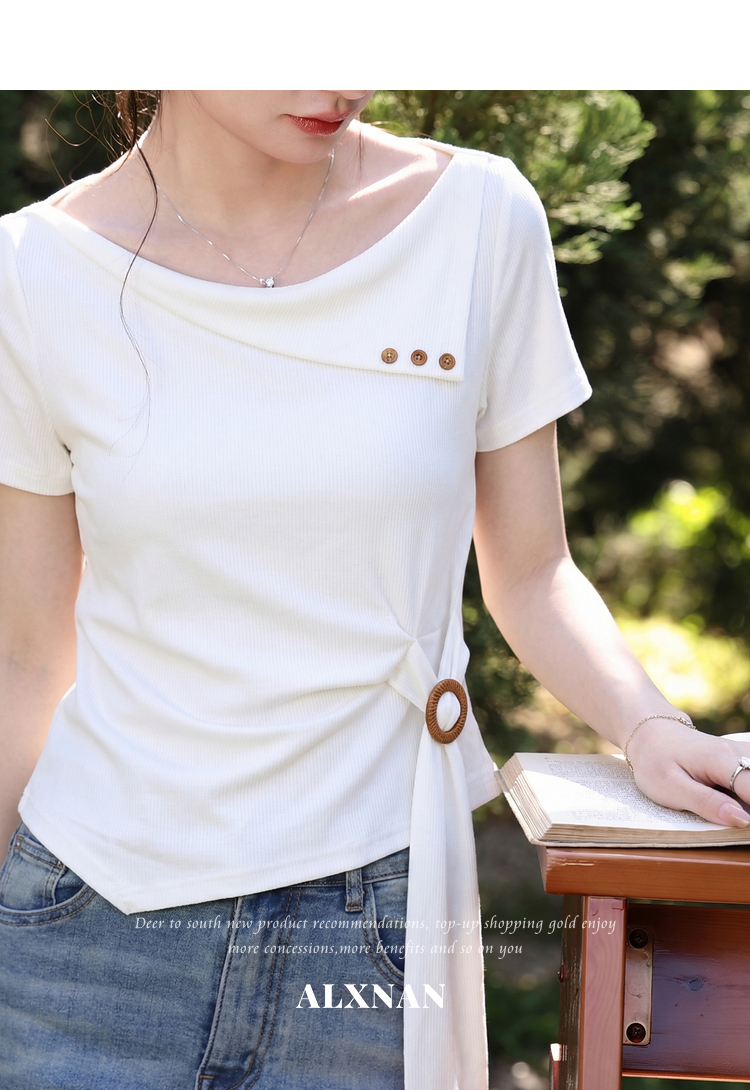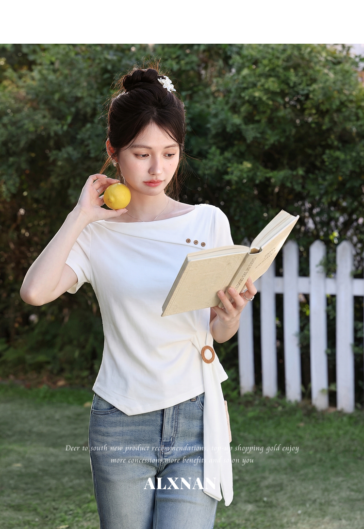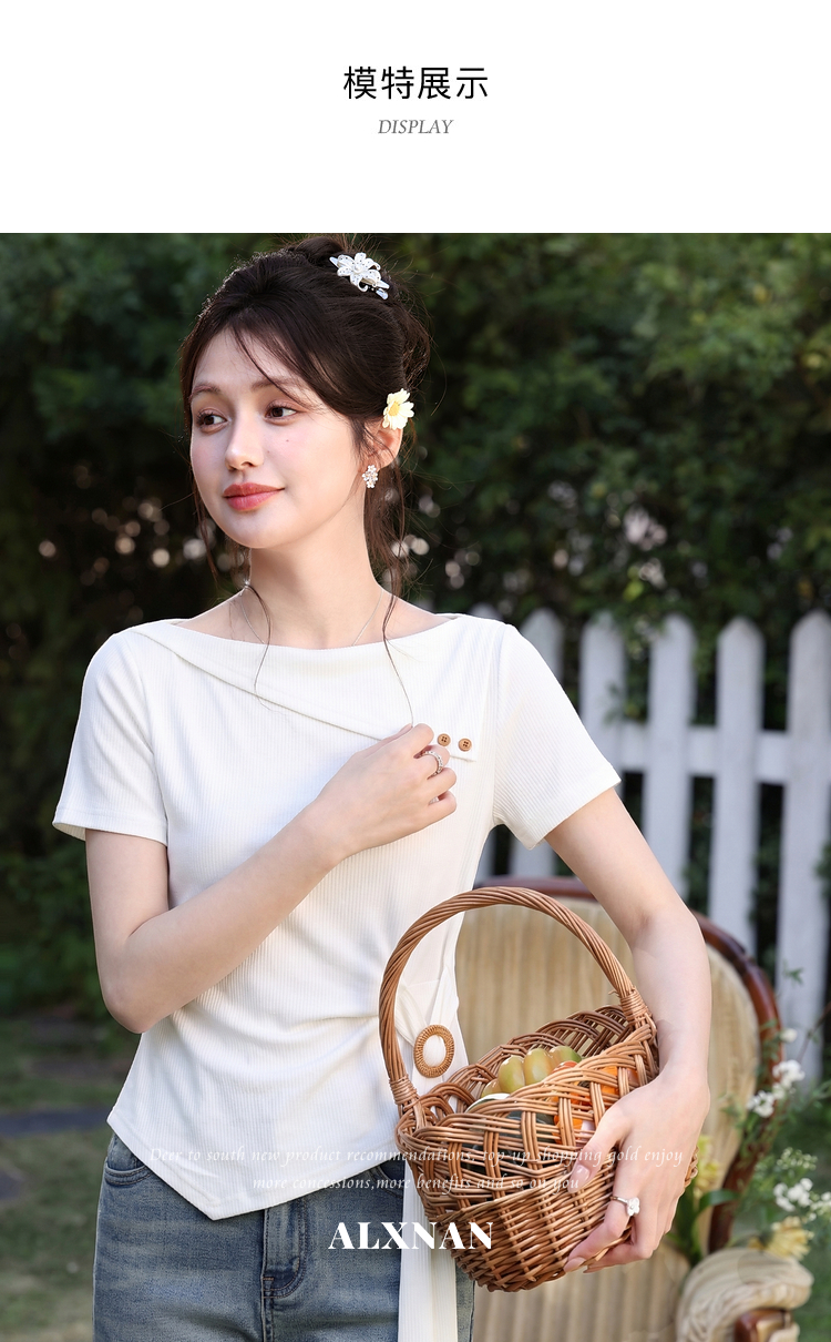 鹿向南【0405/20:00新品】不规则白色T恤短袖