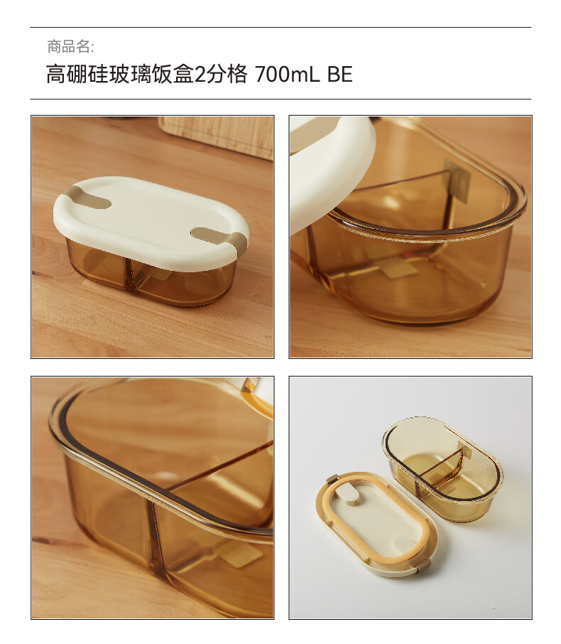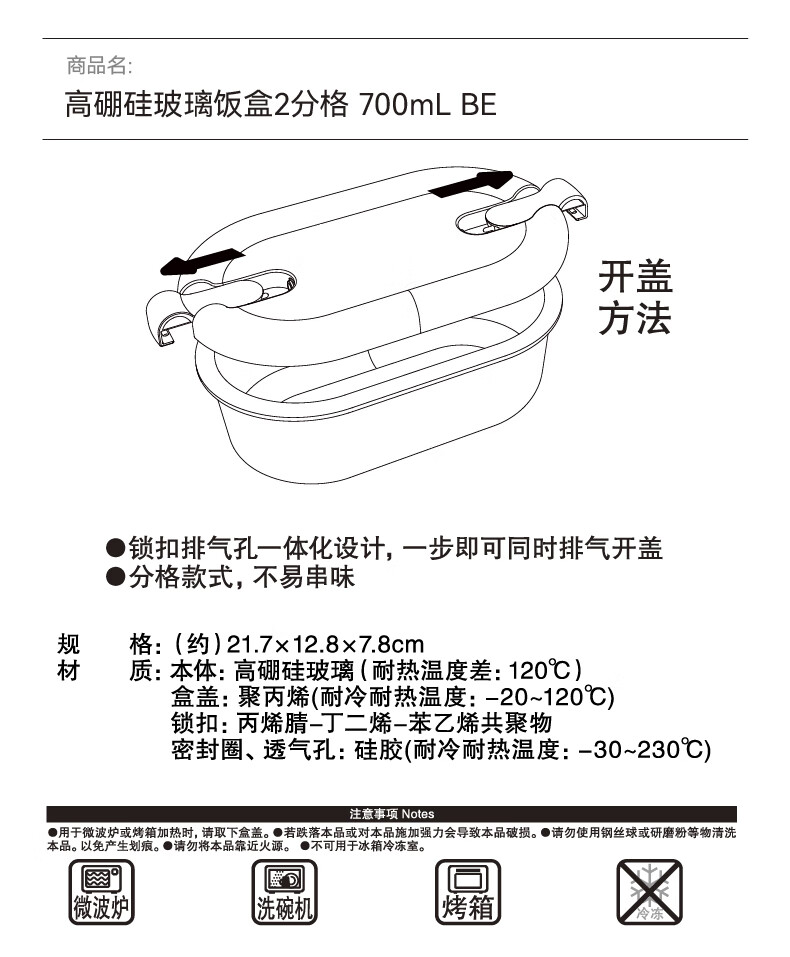 NITORI宜得利家居 耐热高硼硅玻璃饭盒2分格上班族带饭餐盒便当盒