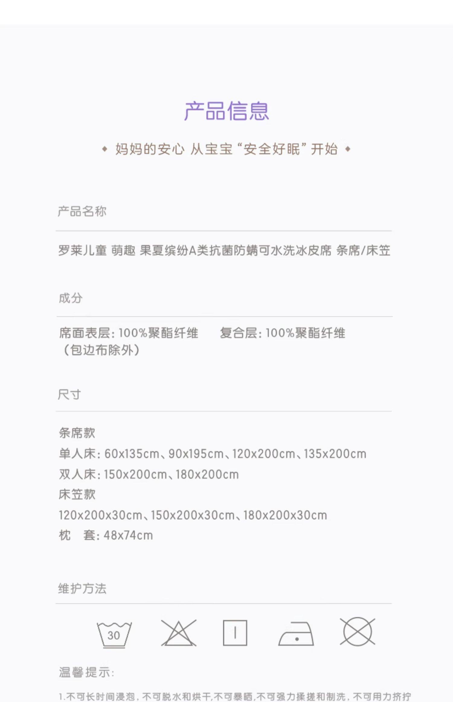 罗莱儿童 萌趣 晚安小象A类抗菌防螨可水洗冰皮席