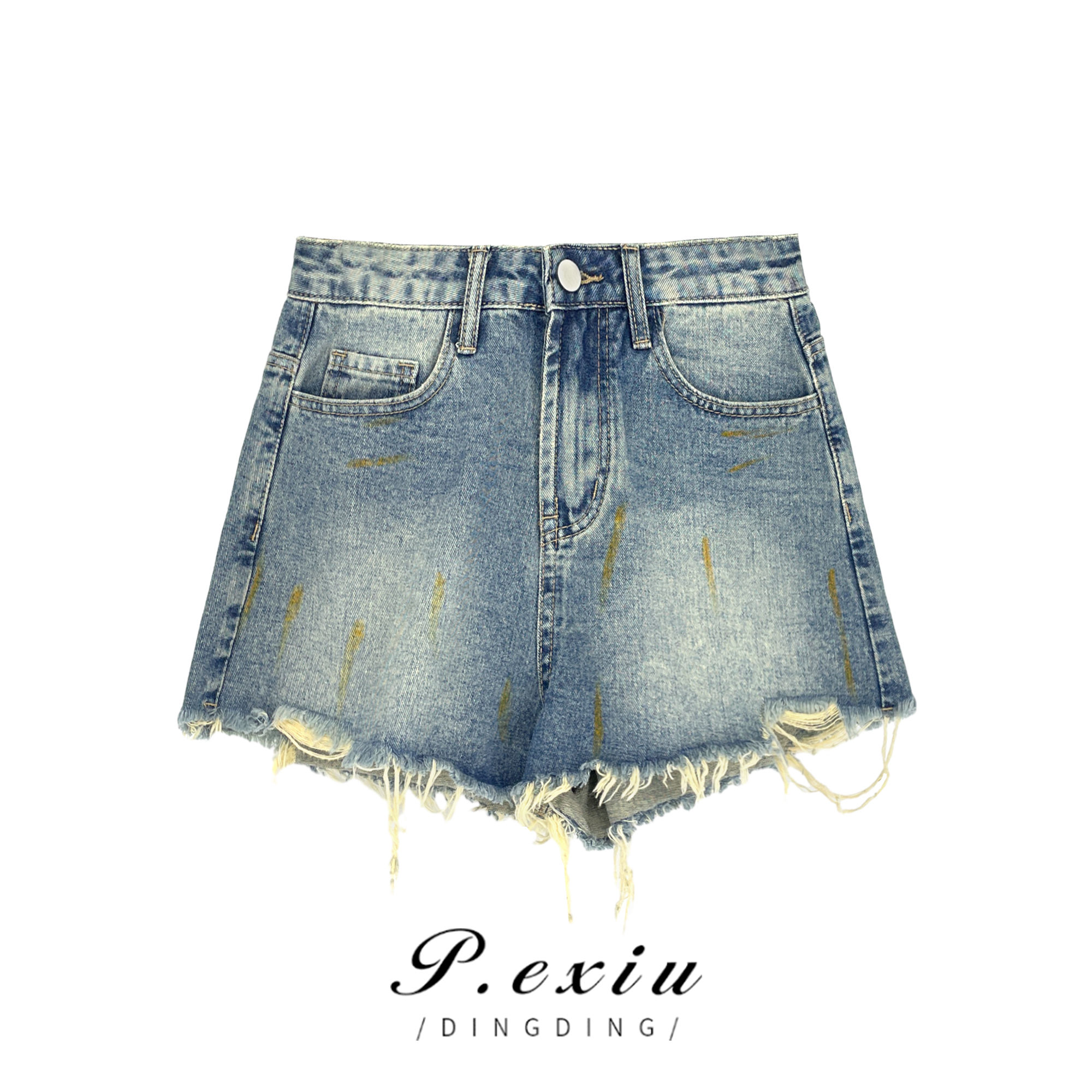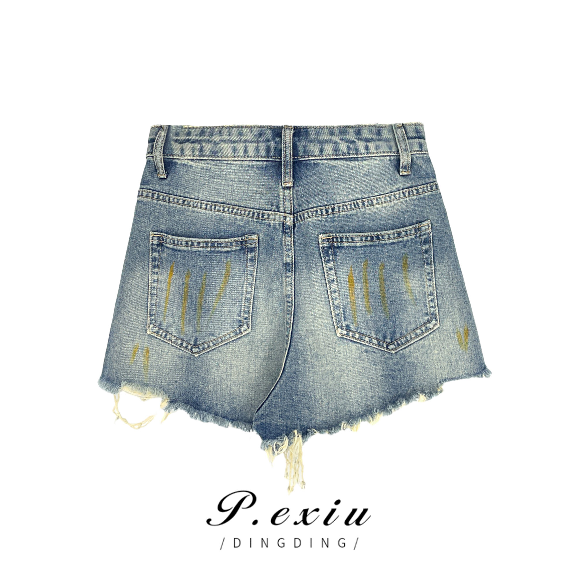 03-5潘依绣丁丁宠粉PanYiXiu/潘依绣夏季新款毛边休闲百搭潮流时尚牛仔短裤 D5913