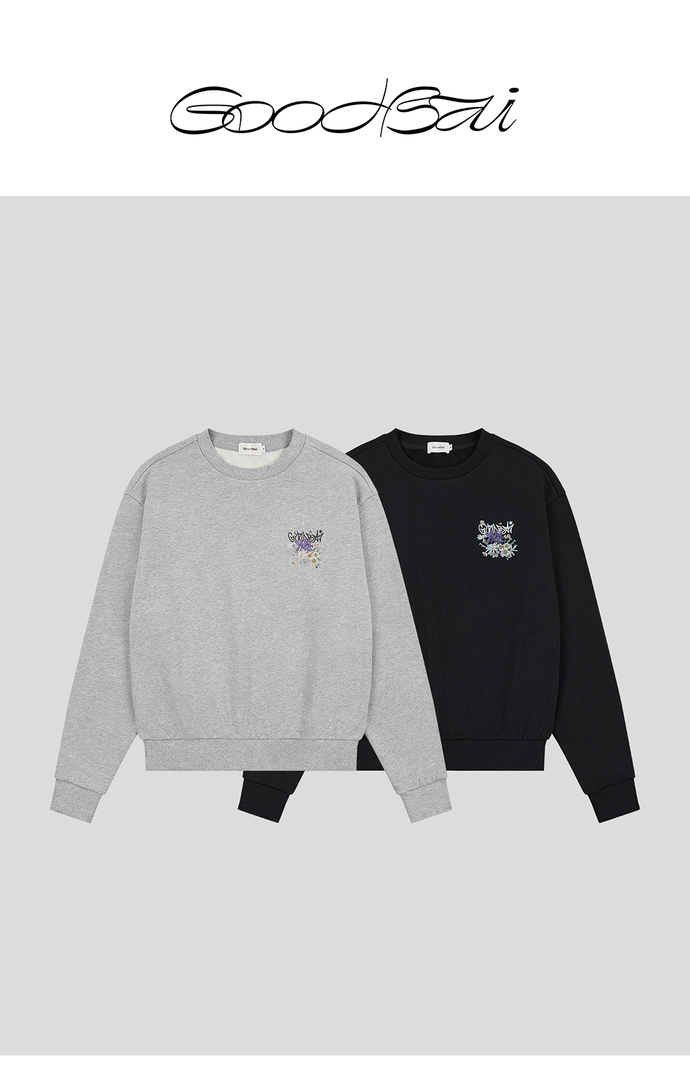 GOODBAI 花朵logo印花圆领卫衣
