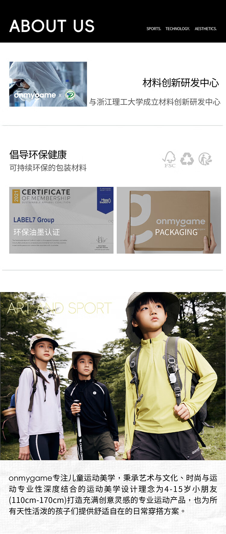 onmygame儿童专业运动品牌男女童款耐脏不易皱,柔软但不软踏