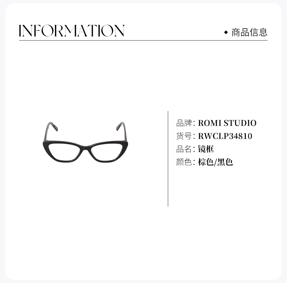 ROMI STUDIO 超轻玳瑁色黑色复古猫眼板材镜框眼镜 RWCLP34810