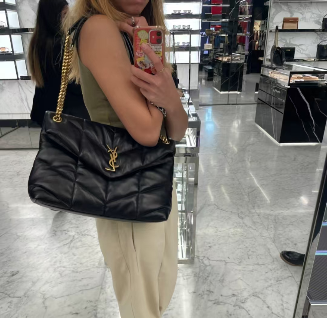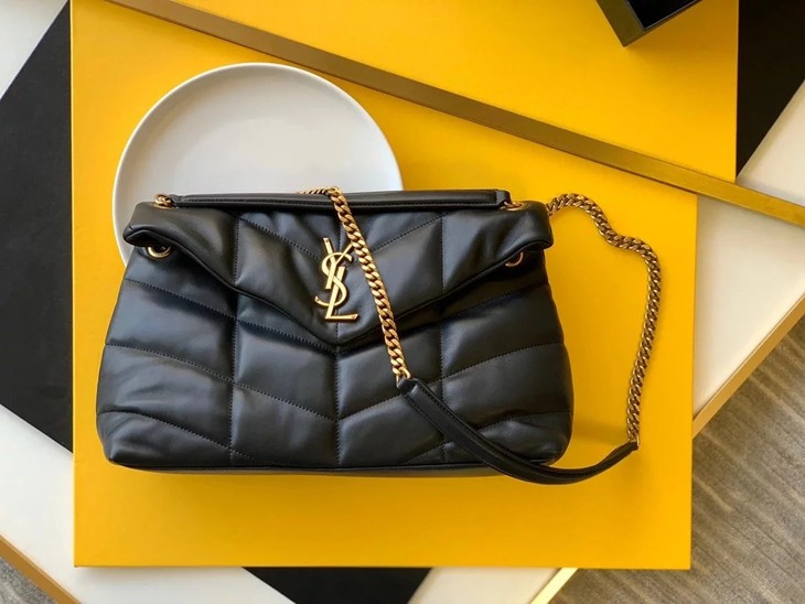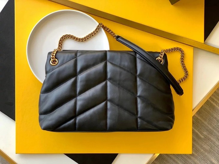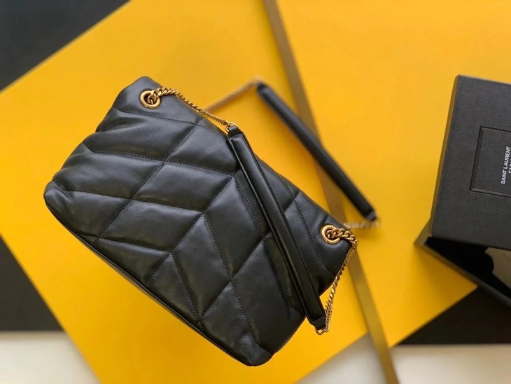 圣罗兰|loulou云朵包黑色金扣3个尺寸| 原厂皮配包装 LOULOU PUFFER 绗缝小羊皮包,小羊皮制作,手感柔软细腻,犹如怀抱云朵 般的感受;经典的Y家logo、链条及扣眼五金均采用银色拉丝金属材质,哑光雾面的质感及其别致.