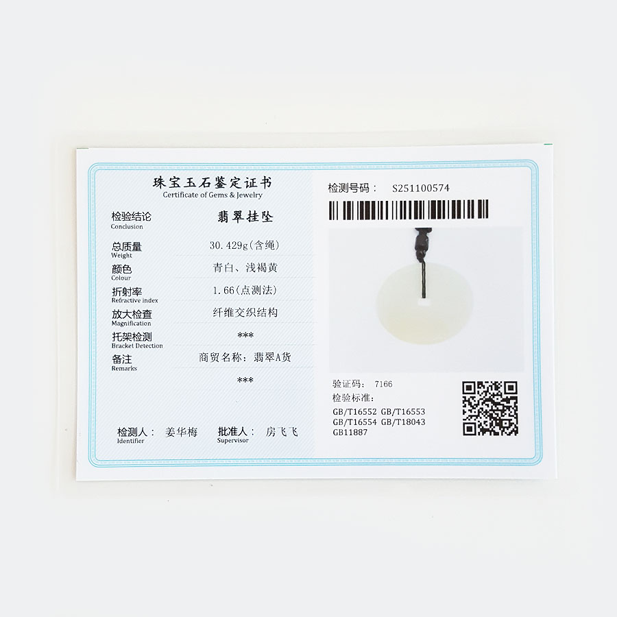 名称 | 天然无杂裂糯种八卦图平安扣翡翠(吉祥、平安)吊坠项链 |