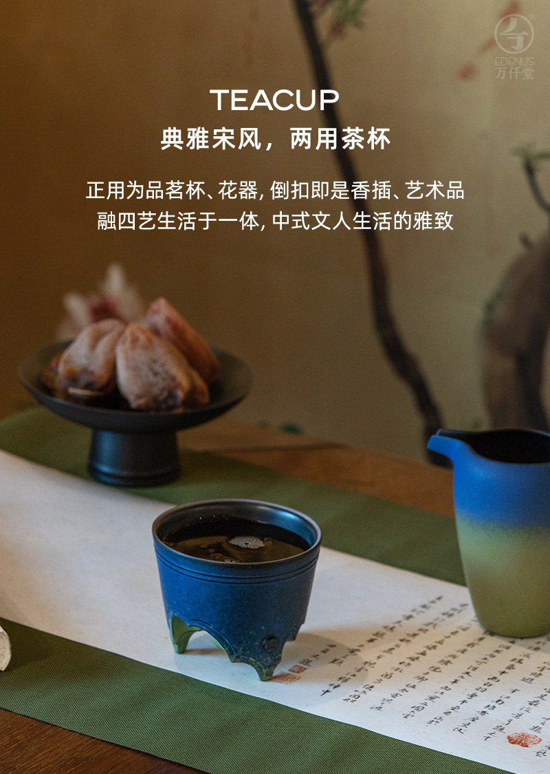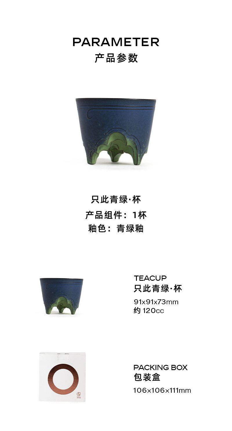 【预售7天】万仟堂茶杯主人杯个人专用高档陶瓷茶杯单杯功夫小茶杯只此青绿 瓷器商品不支持七天无理由