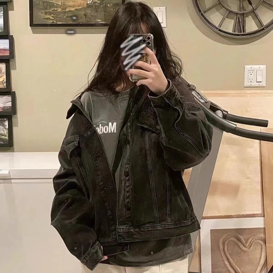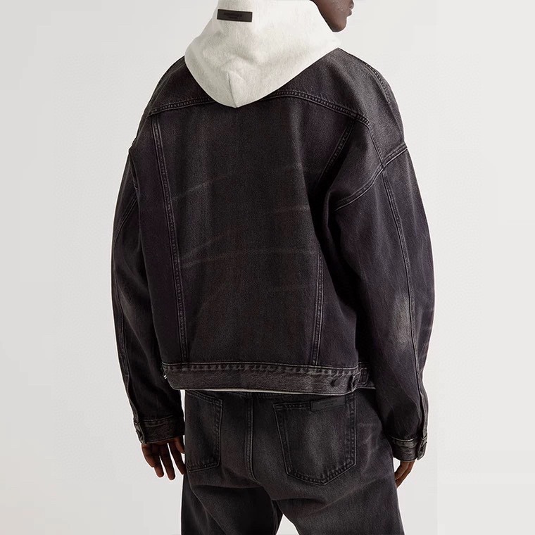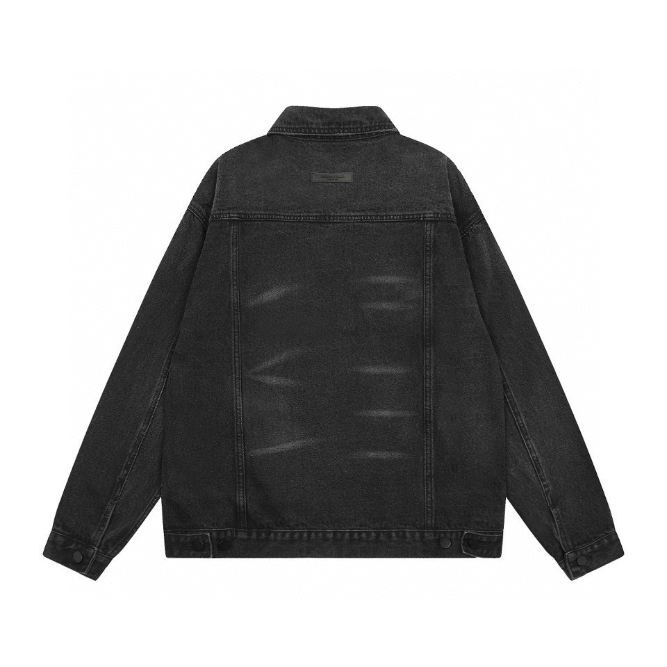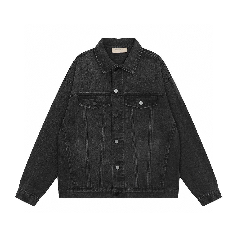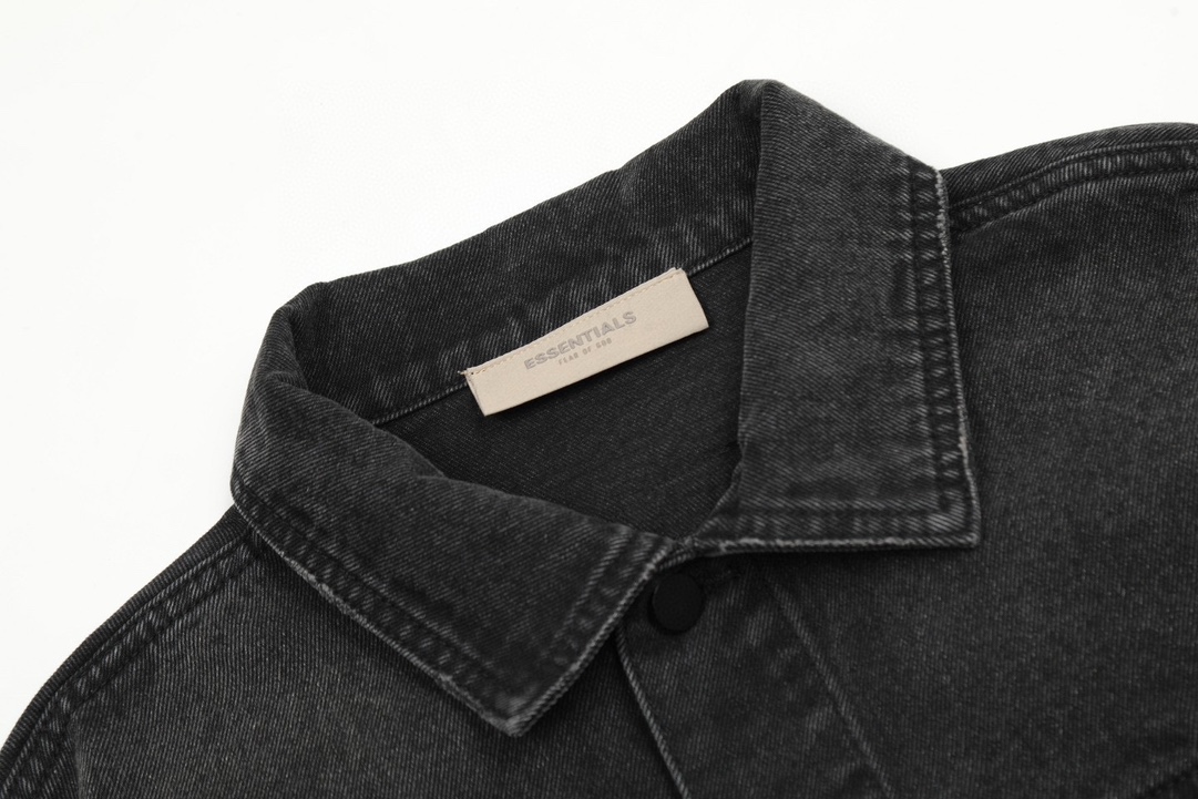 FOG FEAR OF GOD美式ESSENTIALS翻领复古黑色牛仔衣夹克外套 (Y*BG)