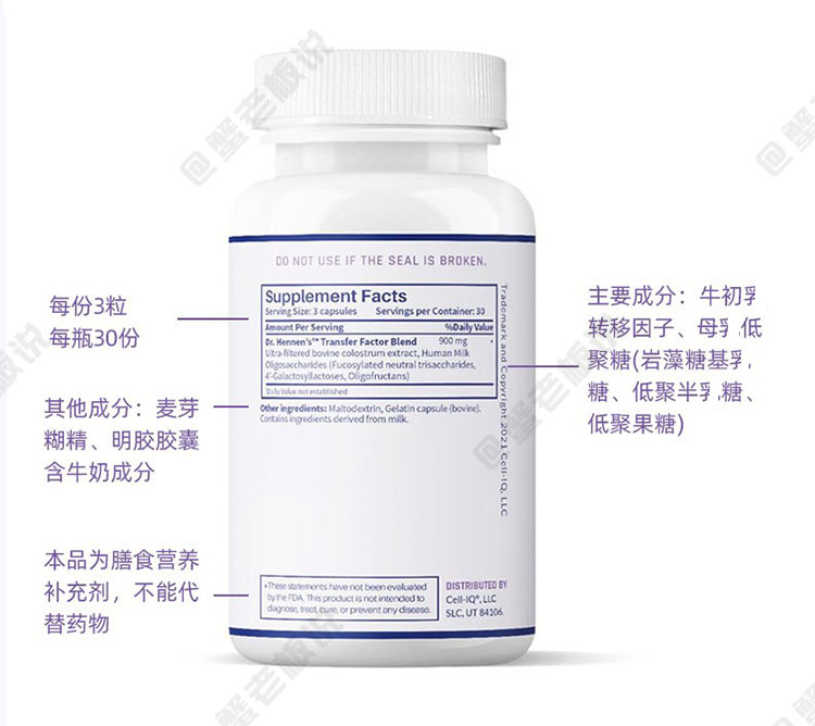 1V1咨询方案美国汉拿博士母乳免疫宝胶囊提高转移因子Cell-IQ