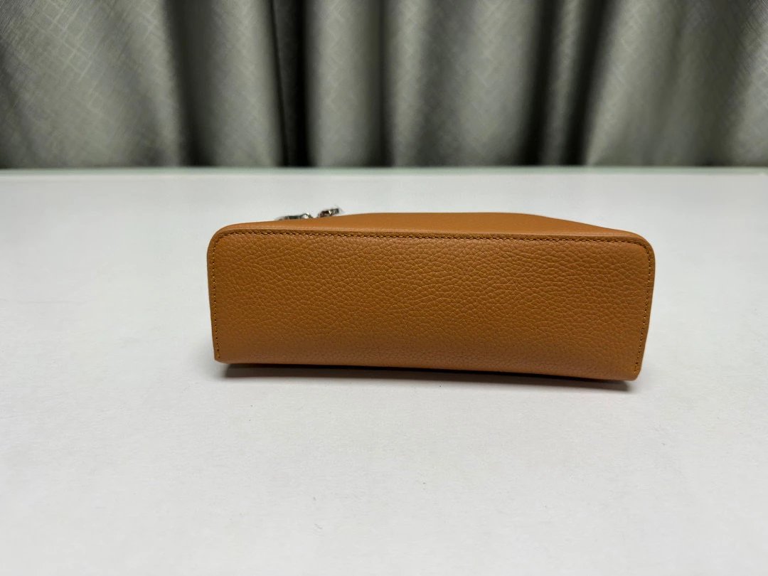 LP|Lpmini饭盒包|HG Lp饭盒包出货了,宽开口小袋采用小牛荔枝纹般柔软的小牛皮打造。随附可拆卸肩带,可打造出百搭迷你包袋,双向拉链开合,材质:牛 皮革里料:羊皮革 五金100 %不锈钢。 小号尺寸:11x19x6.5