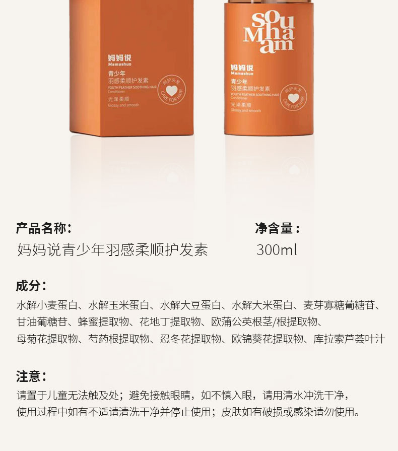 【158任选3件】青少年护发素·妈妈说青少年护发素 羽感顺护滑柔顺修复毛躁改善干枯|妈妈说官方旗舰店