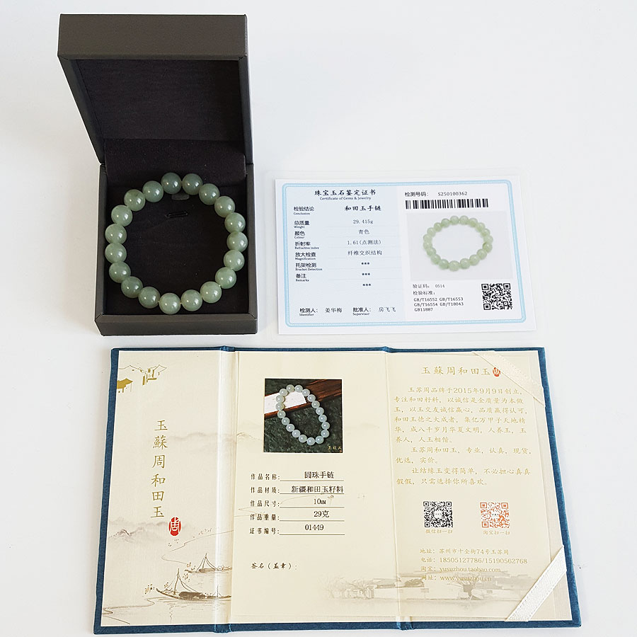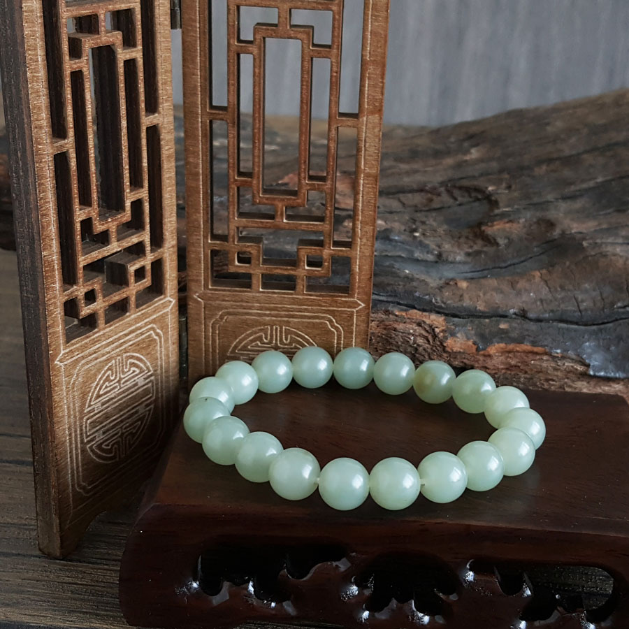 名称 | 天然约10.0MM新疆料青玉和田玉圆珠手串 |