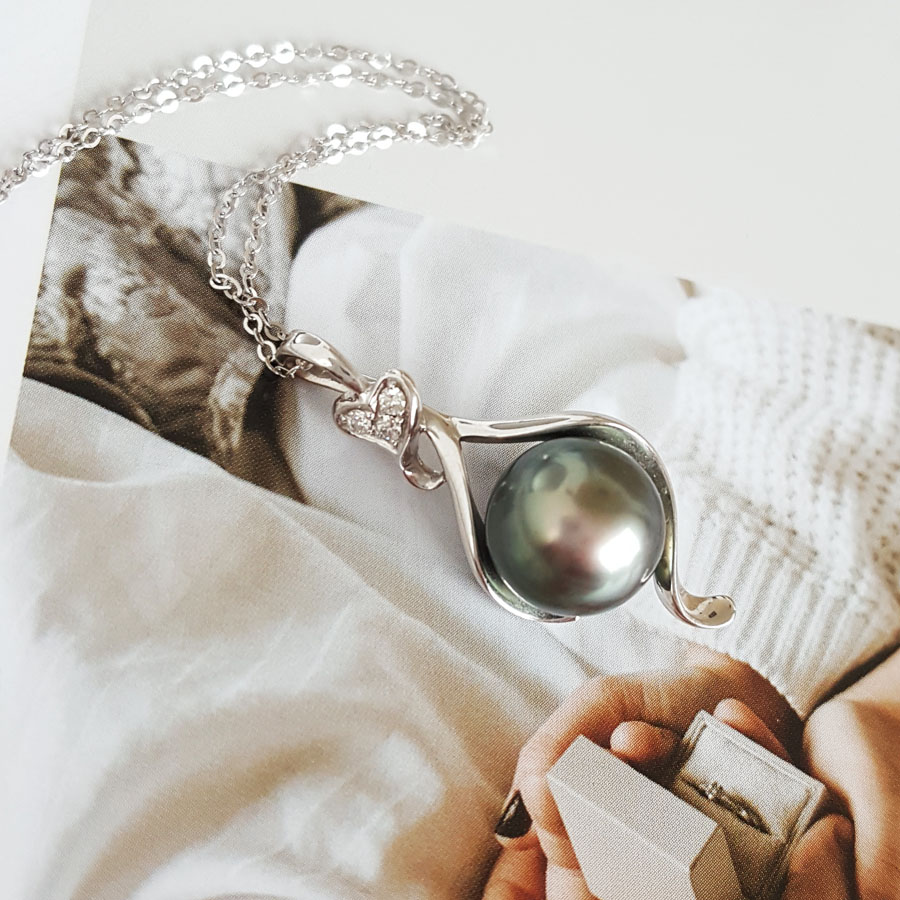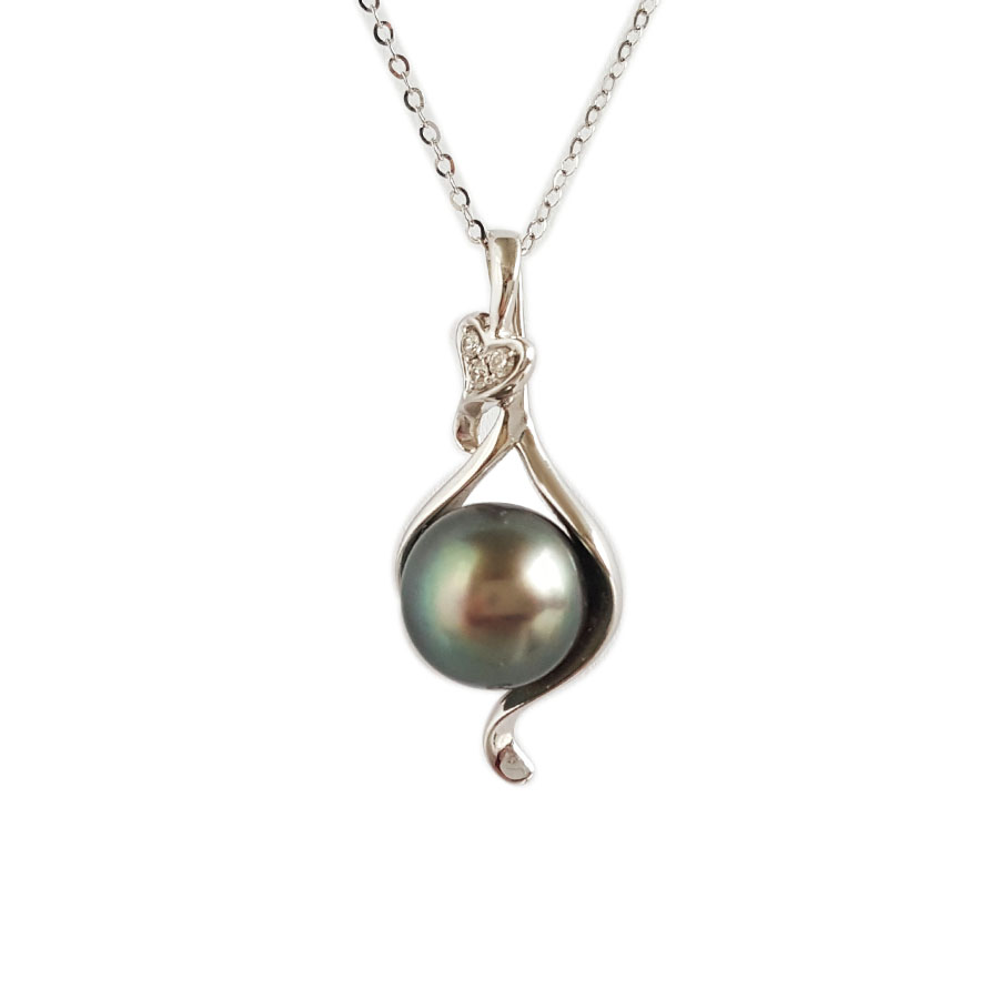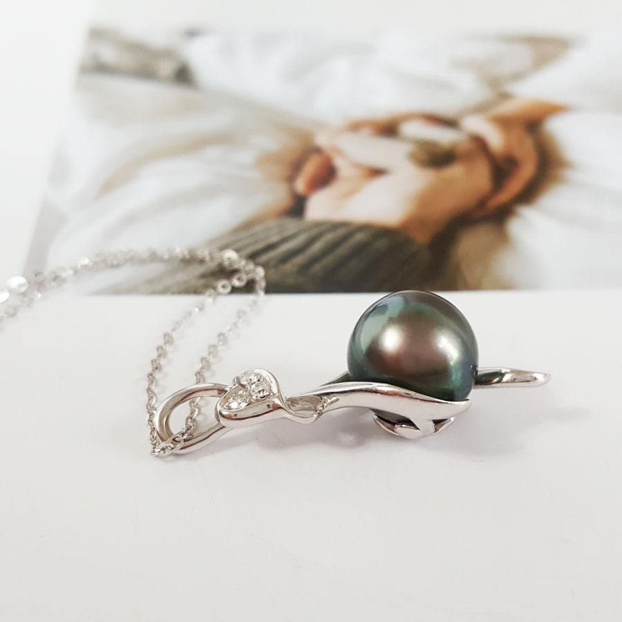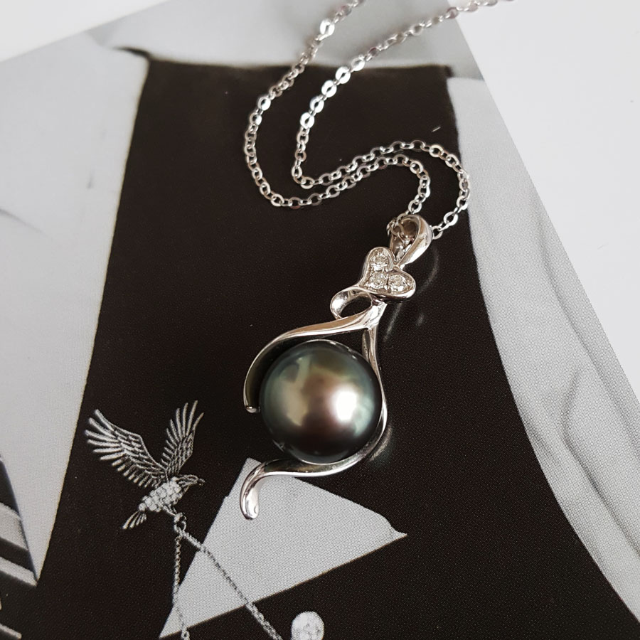 名称 | AU750精品白金镶钻镶孔雀绿近完美9.8MM大溪地海水珍珠吊坠项链 |