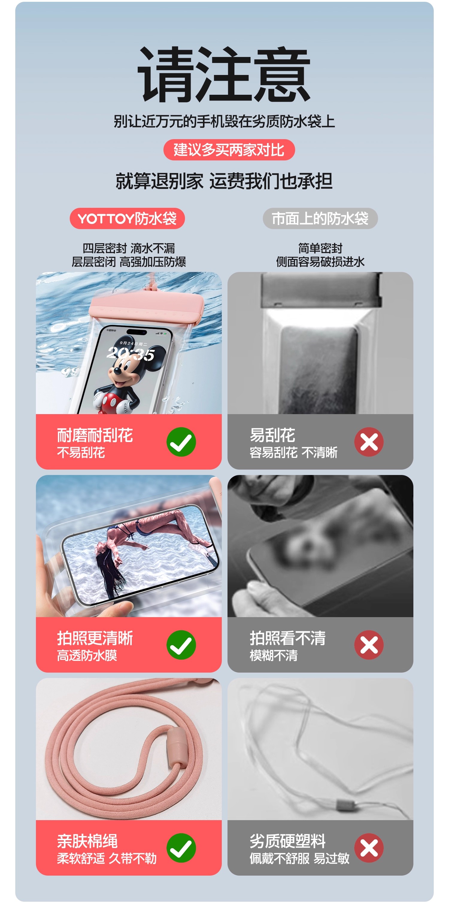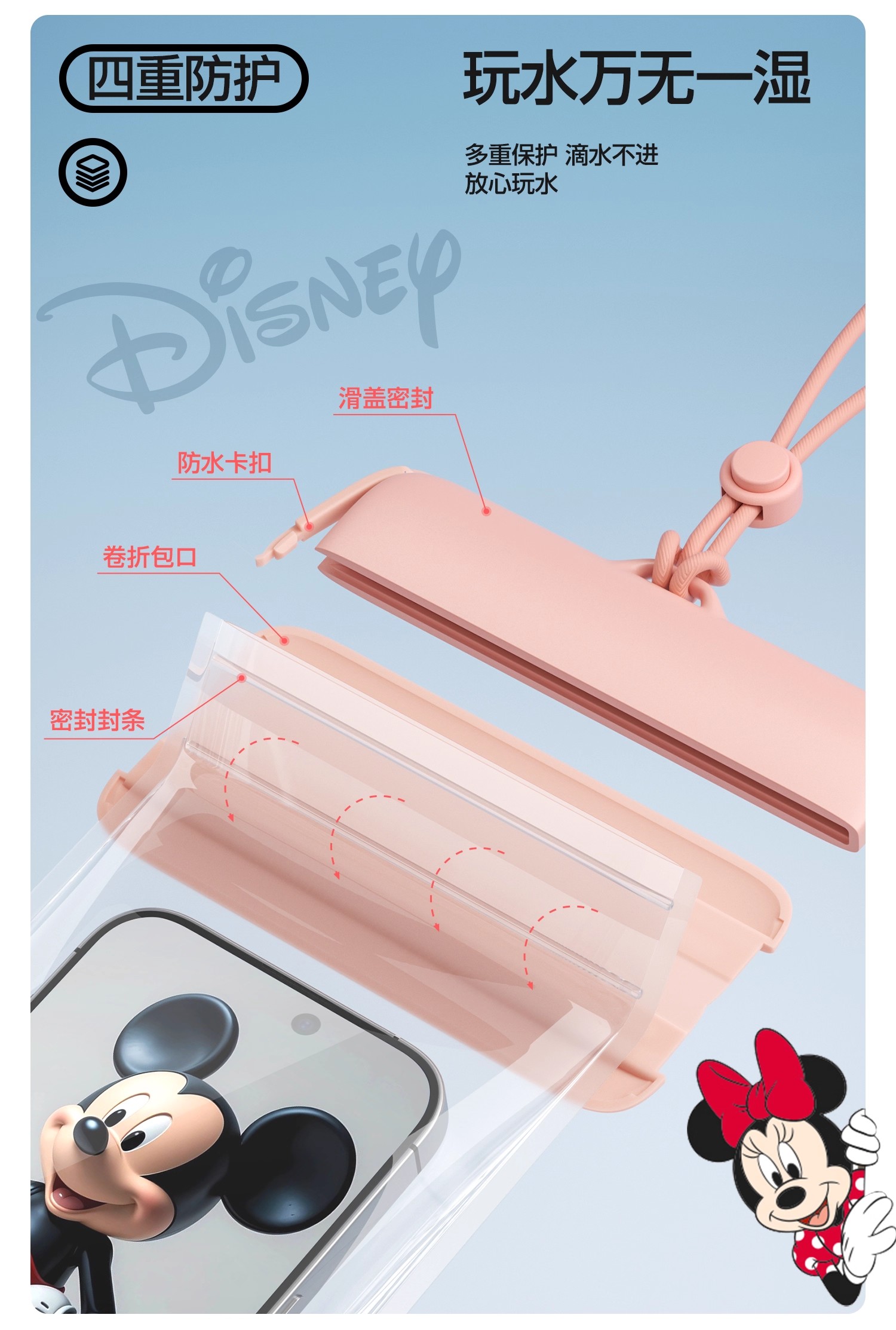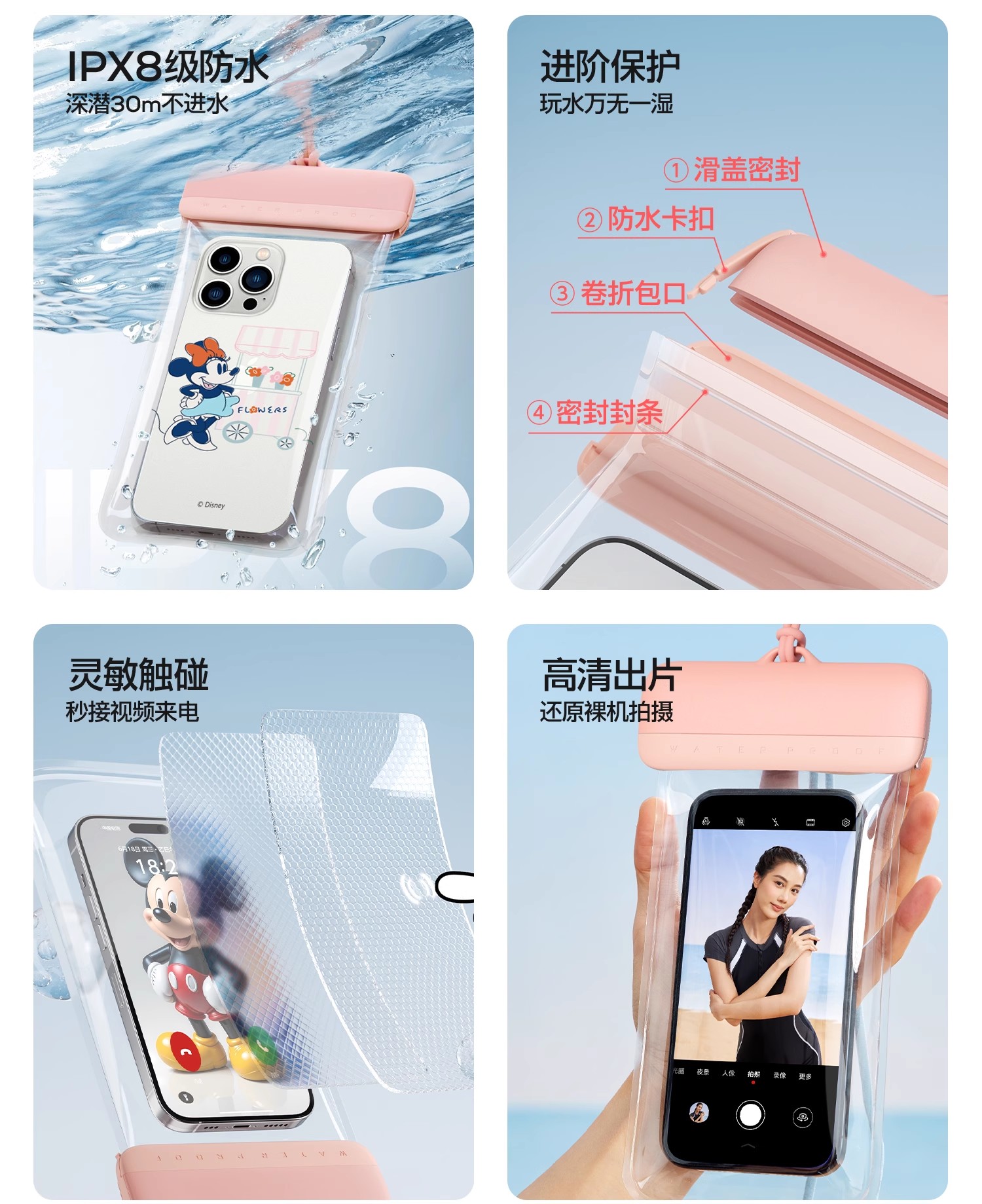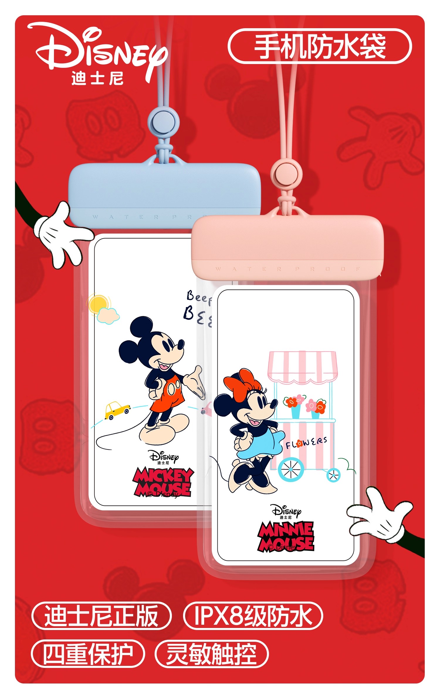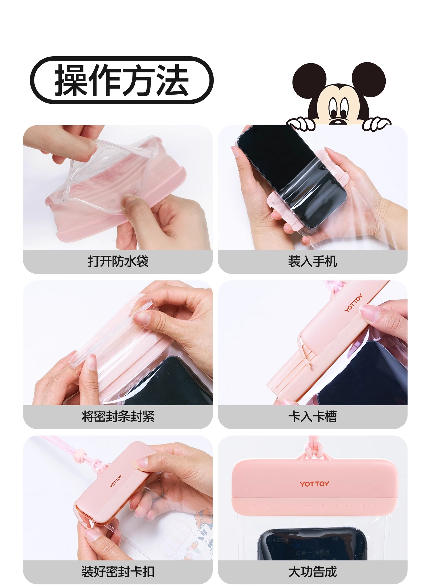 防水袋【YOTTOY】迪士尼手机防水袋可触屏拍照游泳专用潜水套漂流装备外卖骑手必备