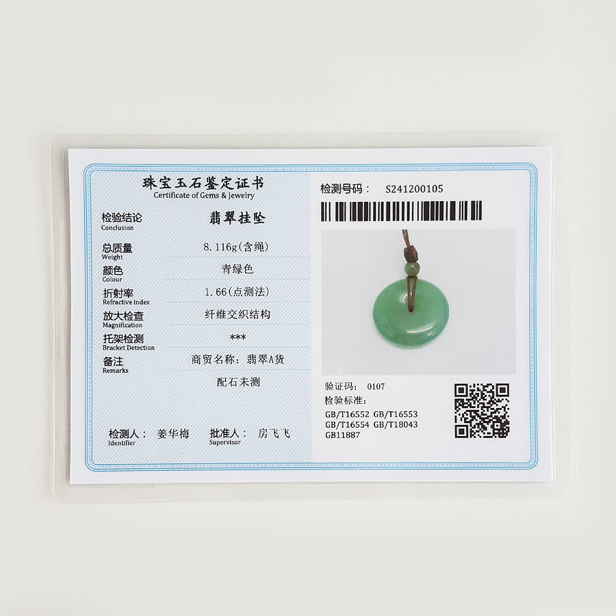 【天然正品】天然冰种绿色平安扣造型翡翠(吉祥、如意)吊坠项链031224NJM23 现售价:3880