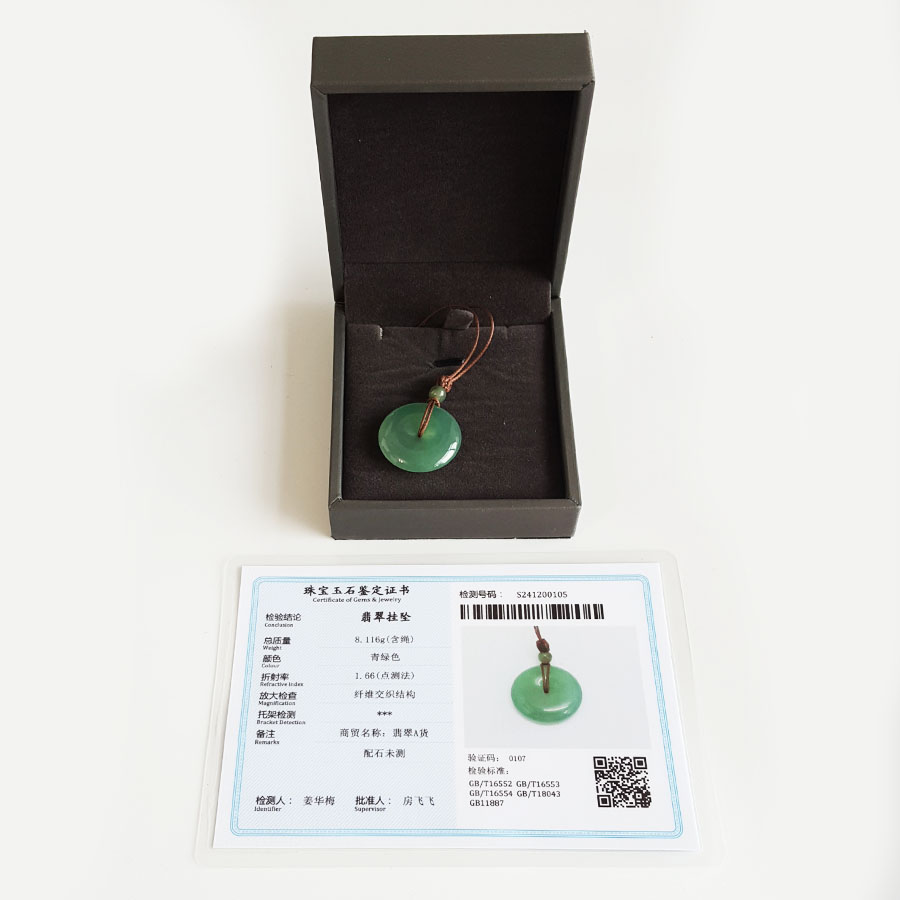 名称 | 天然冰种绿色平安扣造型翡翠(吉祥、如意)吊坠项链 |