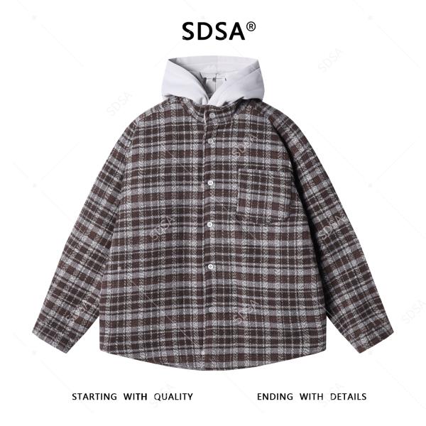 47176SDSA男士秋冬新款痞帅男装韩版拼接格纹纽扣连帽夹克外套百搭时尚