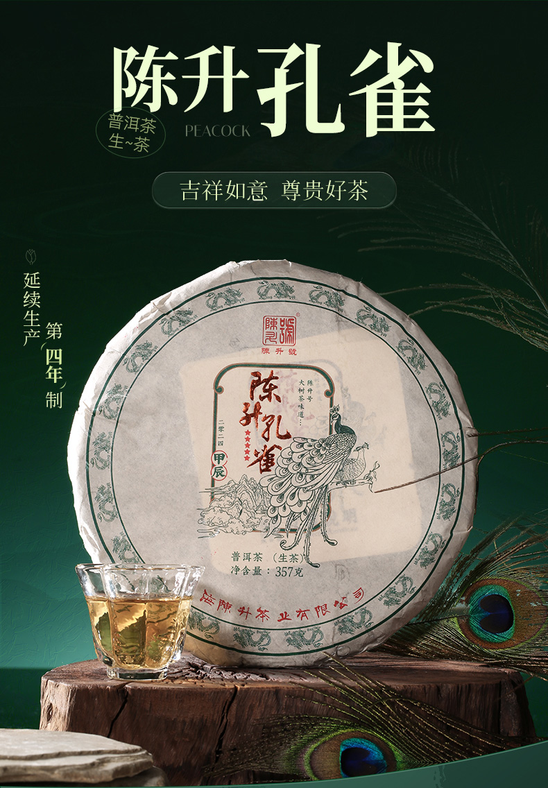 陈升号 2024年陈升孔雀357g(生茶)