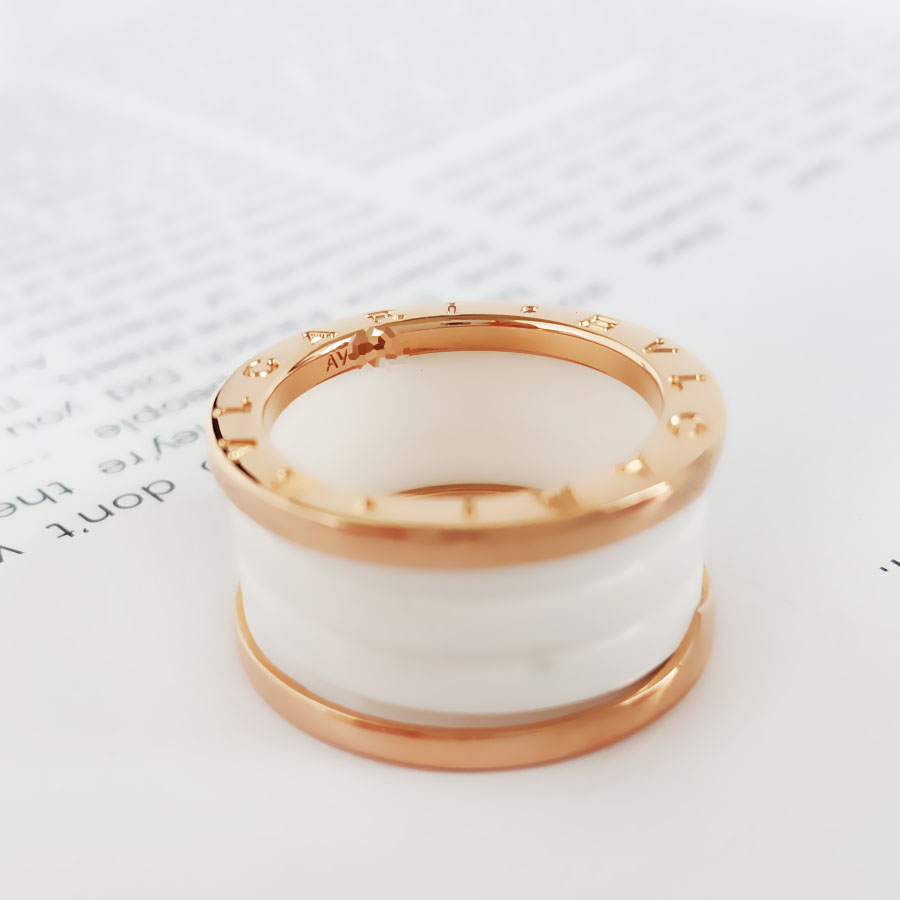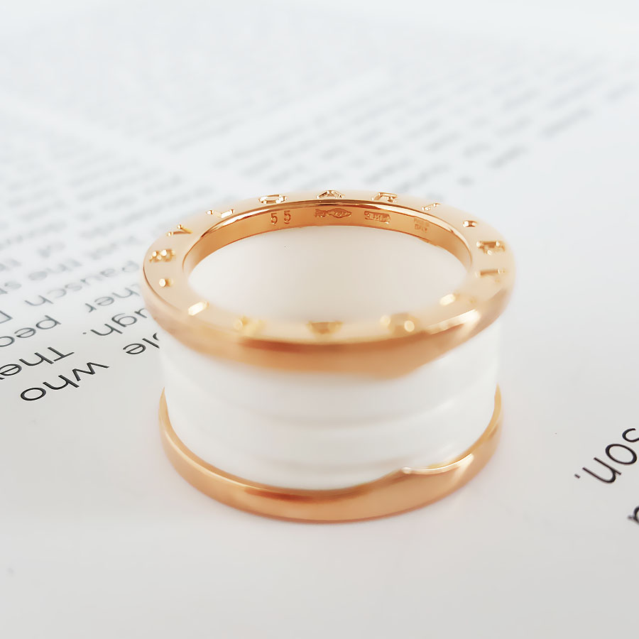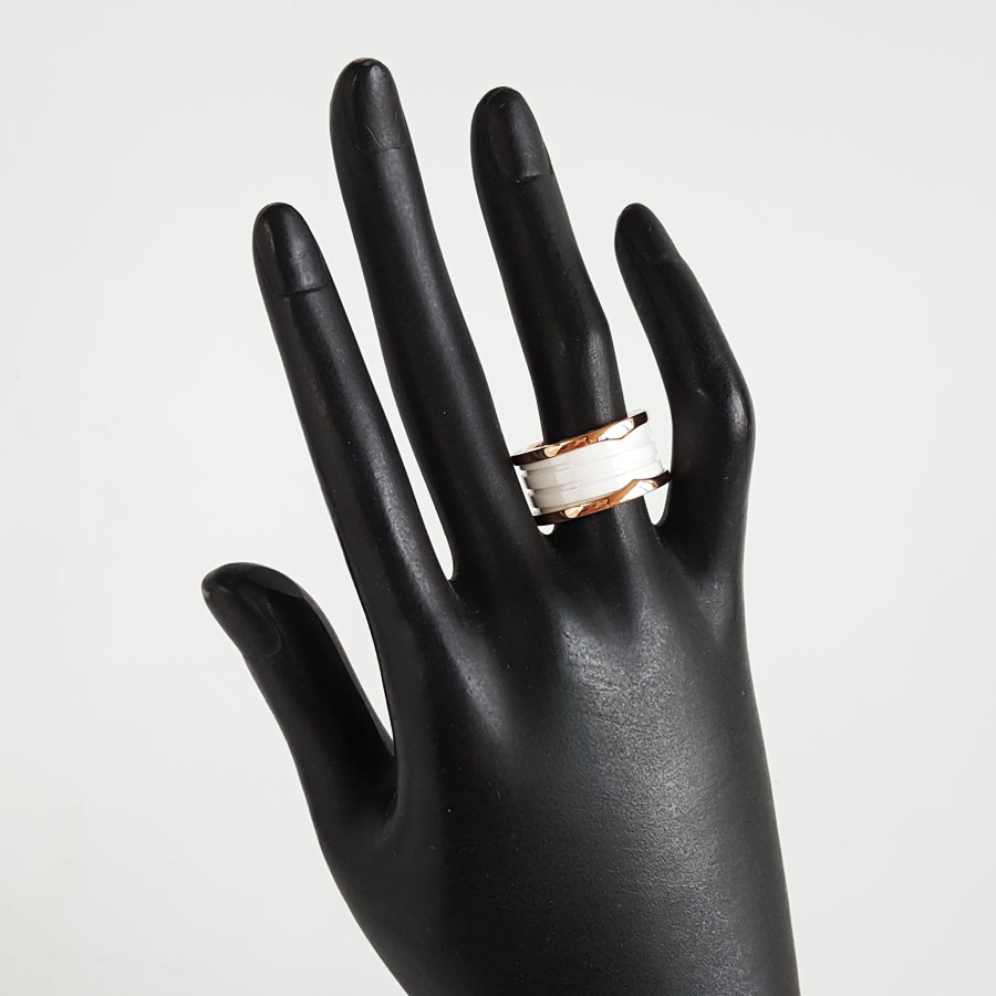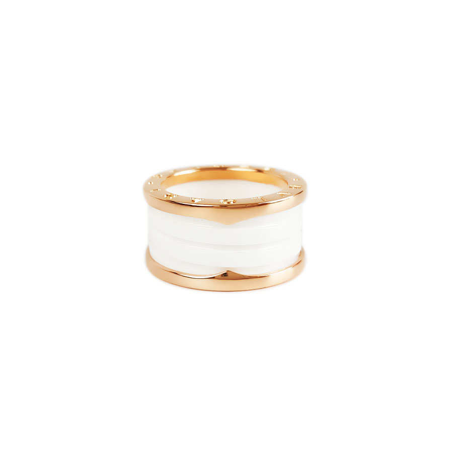 【95新】BVLGARI宝格丽B.zero1系列AN855564 18K玫瑰金白陶瓷四环弹簧戒指55号中性款现售价:4900!030425NJS116