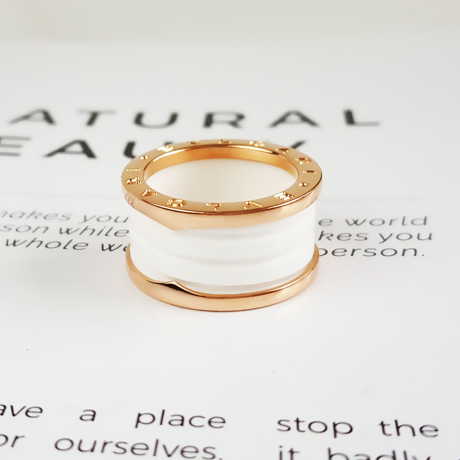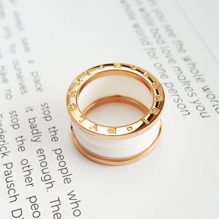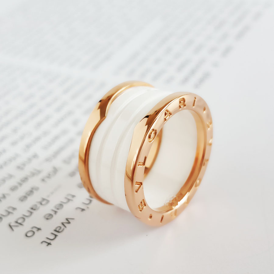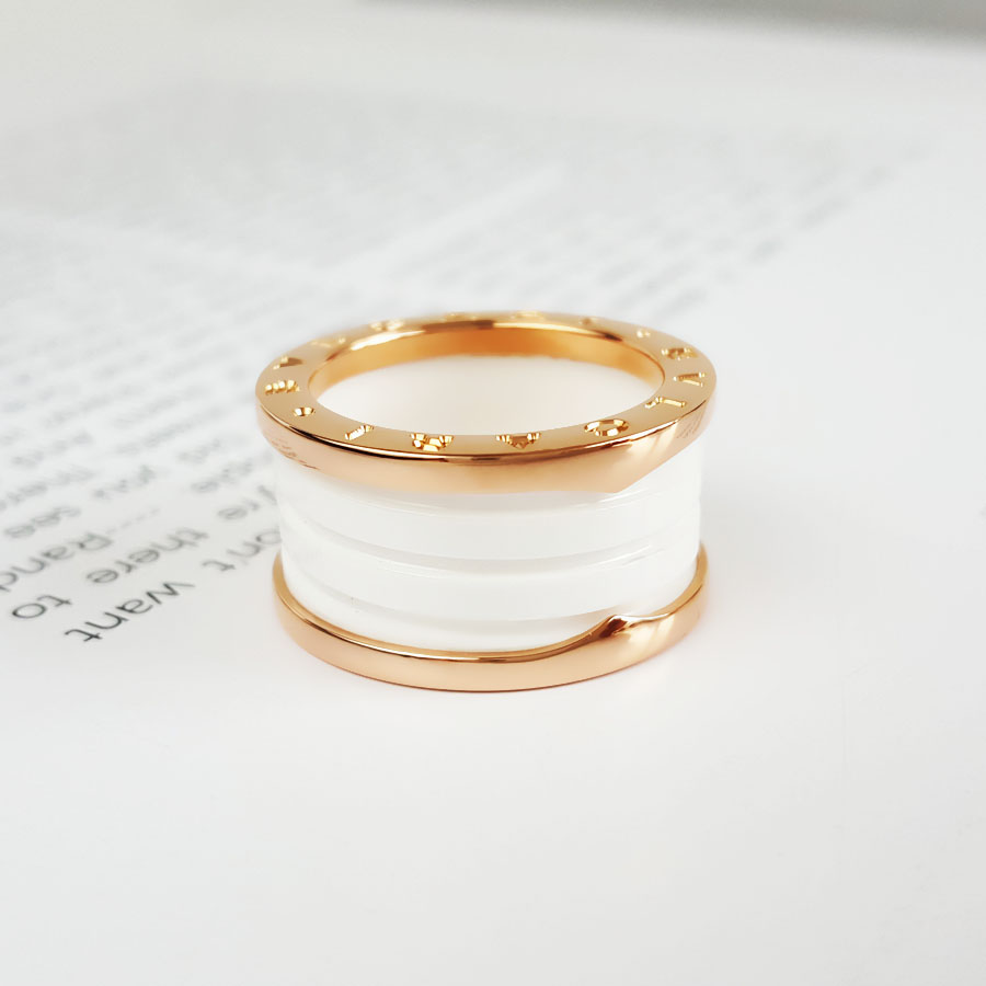 【95新】BVLGARI宝格丽B.zero1系列AN855564 18K玫瑰金白陶瓷四环弹簧戒指55号中性款现售价:4900!030425NJS116