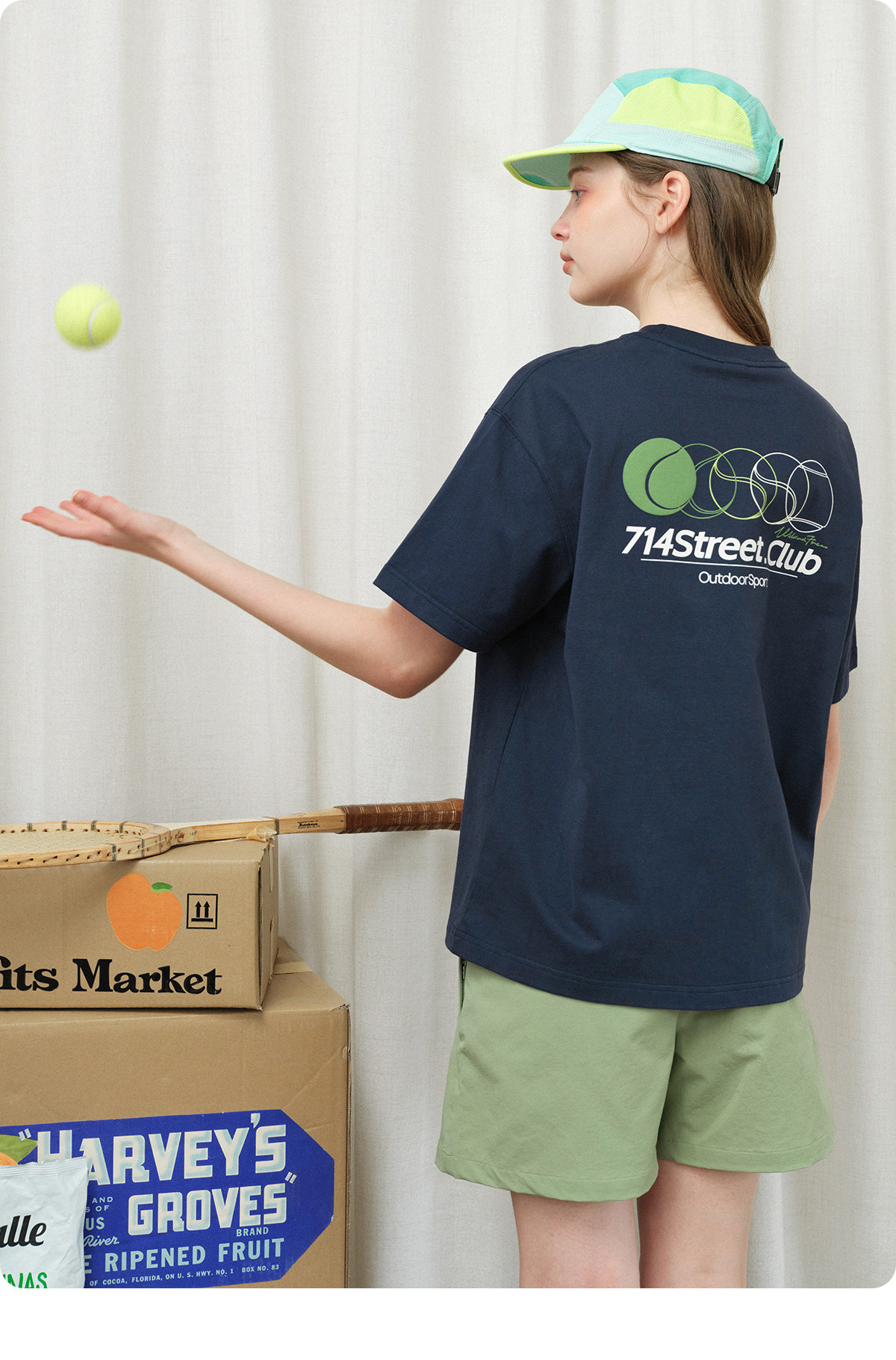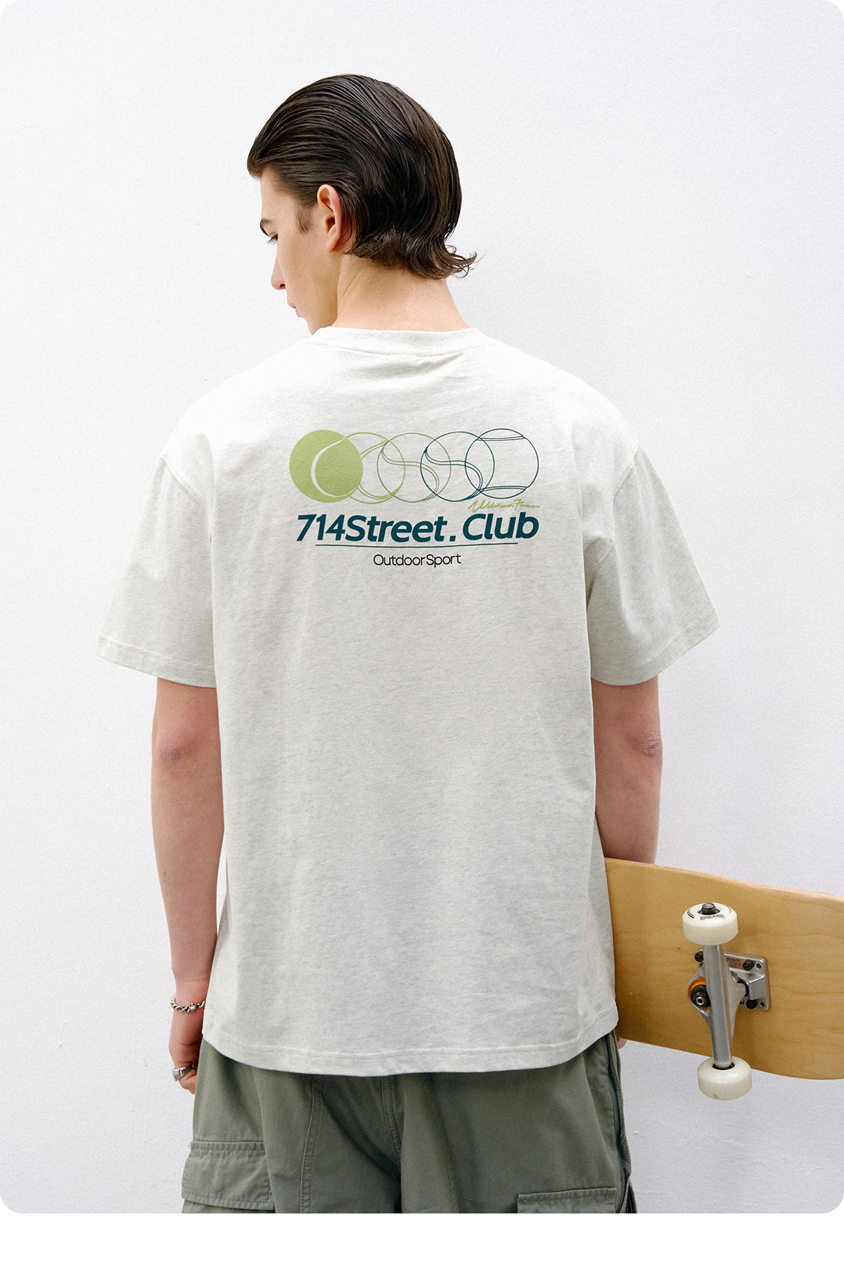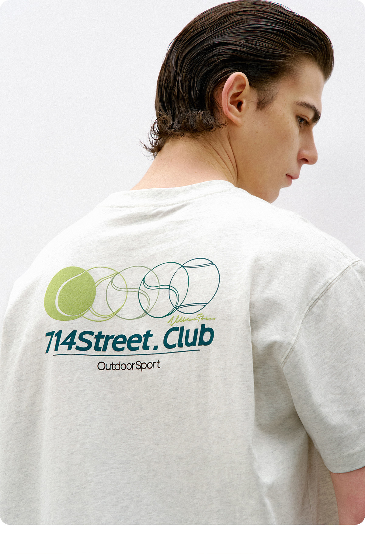 714street网球绒面发泡印花短袖2026春夏宽松圆领纯棉情侣T恤男款
