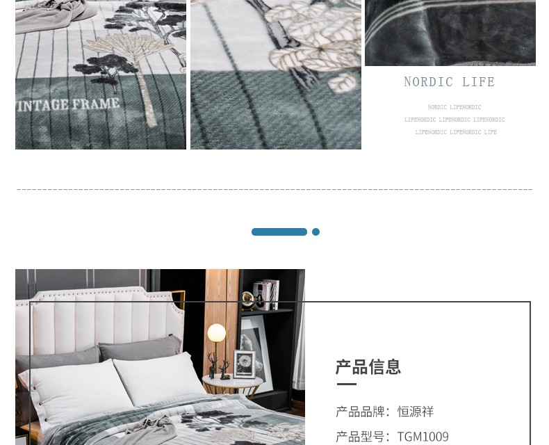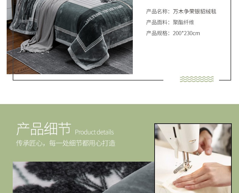 恒源祥礼业TGM1009万木争荣银貂绒毯 200*230