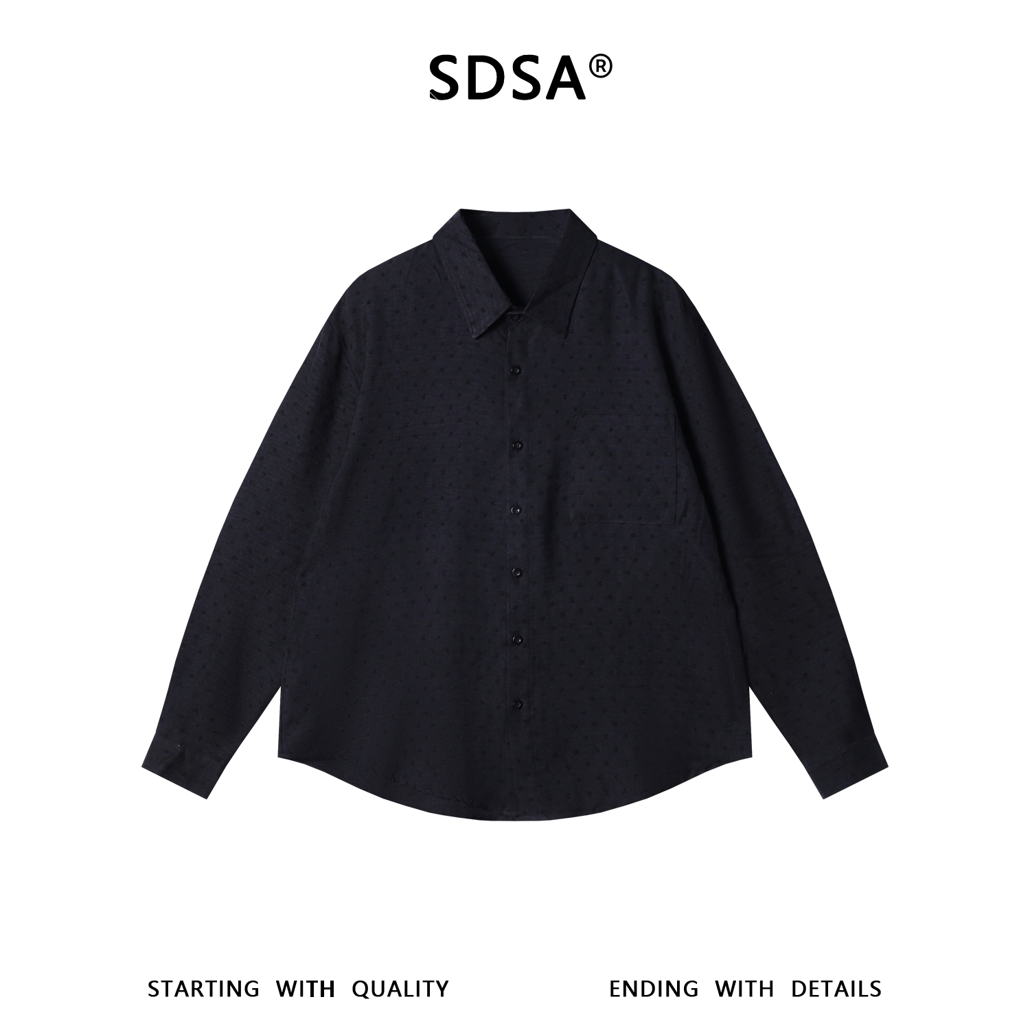 6849SDSA男士春夏新款痞帅男装设计感磨破翻领长袖衬衫百搭显瘦衬衣
