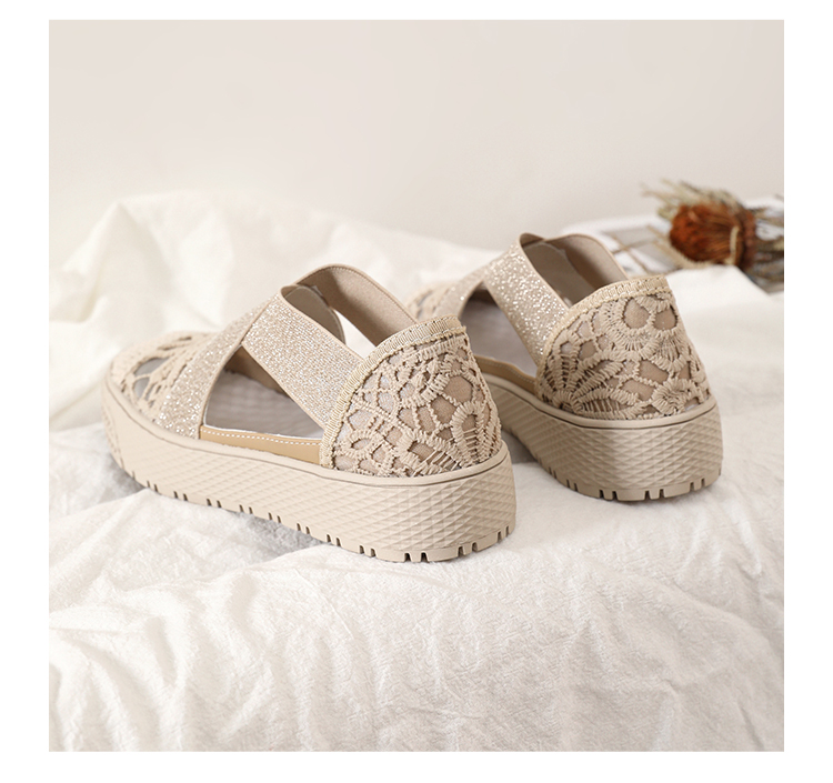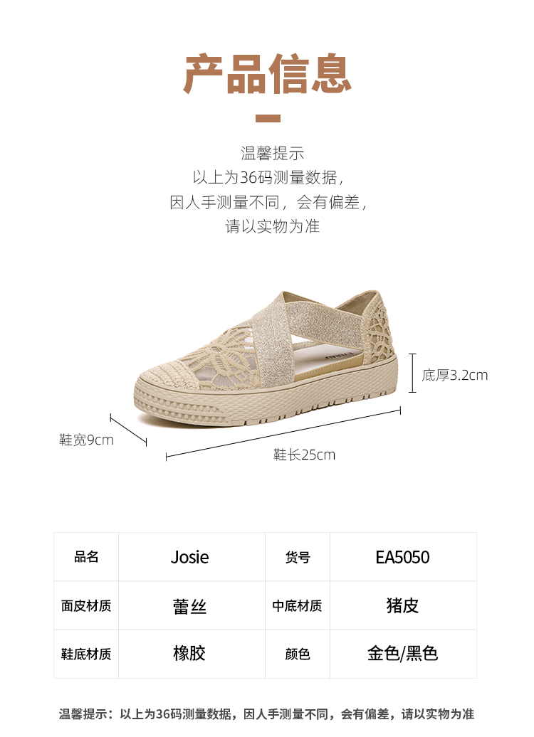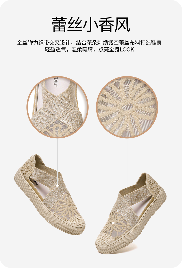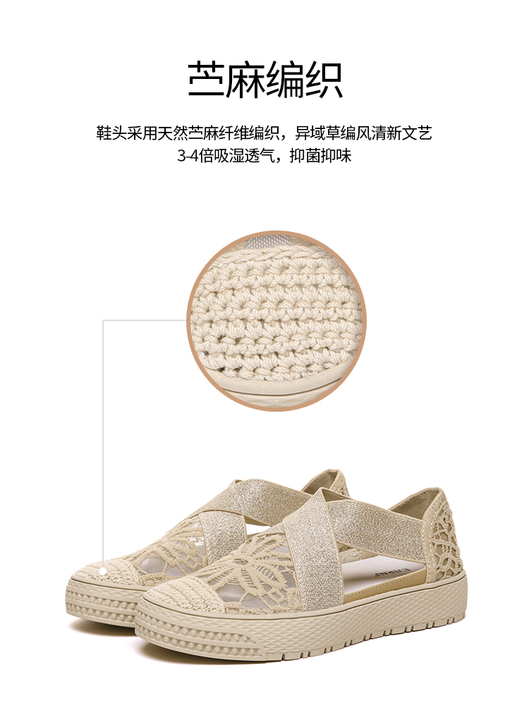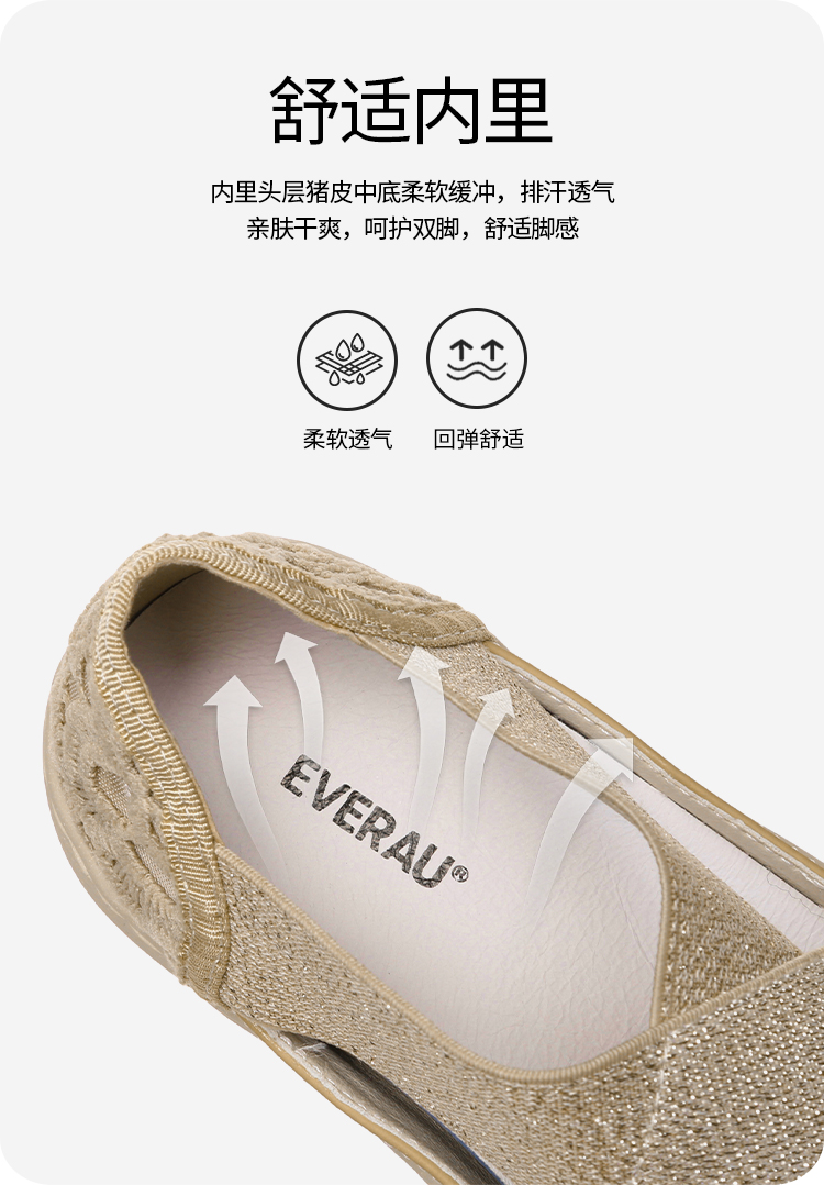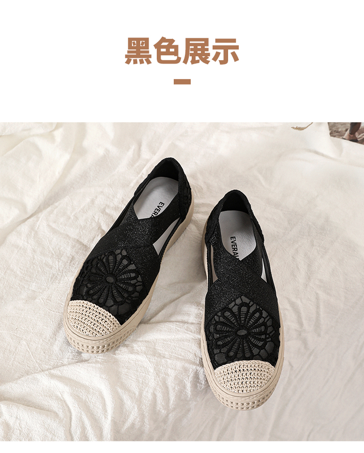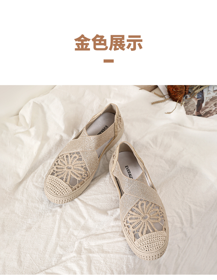 【澳洲品牌】EVERAU春夏女鞋渔夫鞋蕾丝凉鞋一脚蹬松紧带平底百搭EA5050