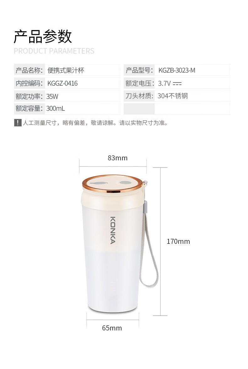 康佳(KONKA)榨汁杯无线迷你随行电动便携式果汁杯KGZB-3023-M