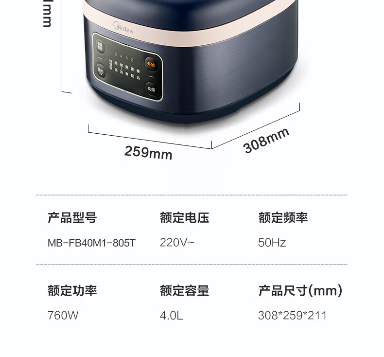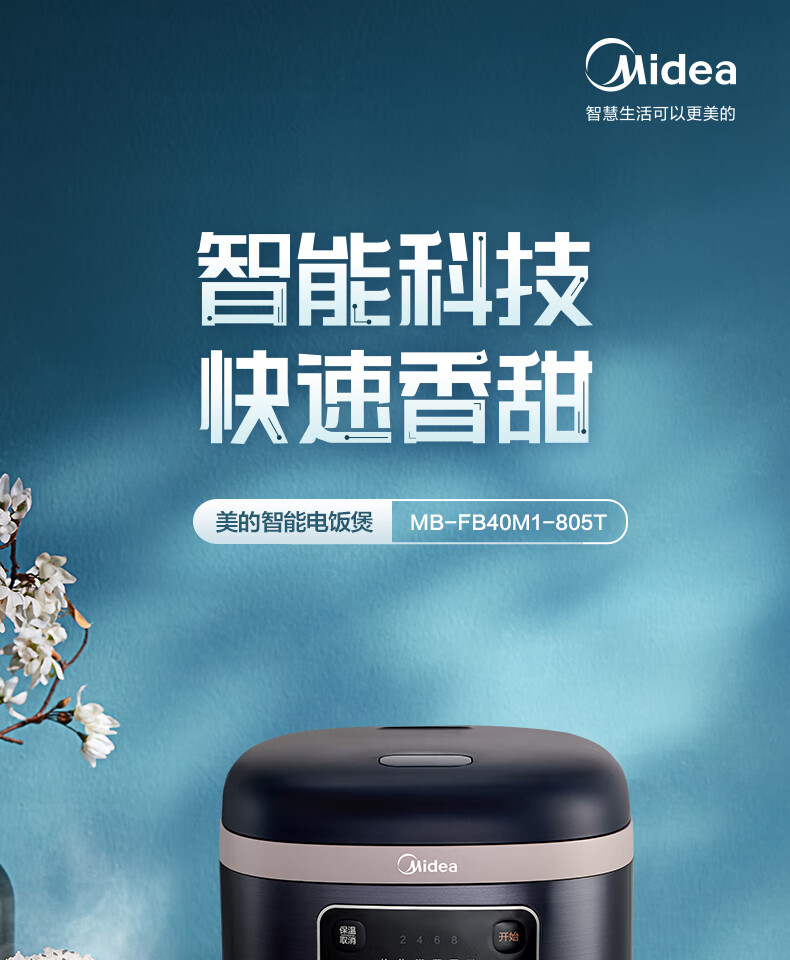 Midea美的电饭煲家用4L智能电饭锅蒸米饭锅聚能内胆不粘锅FB40M1-805T多功能BSD