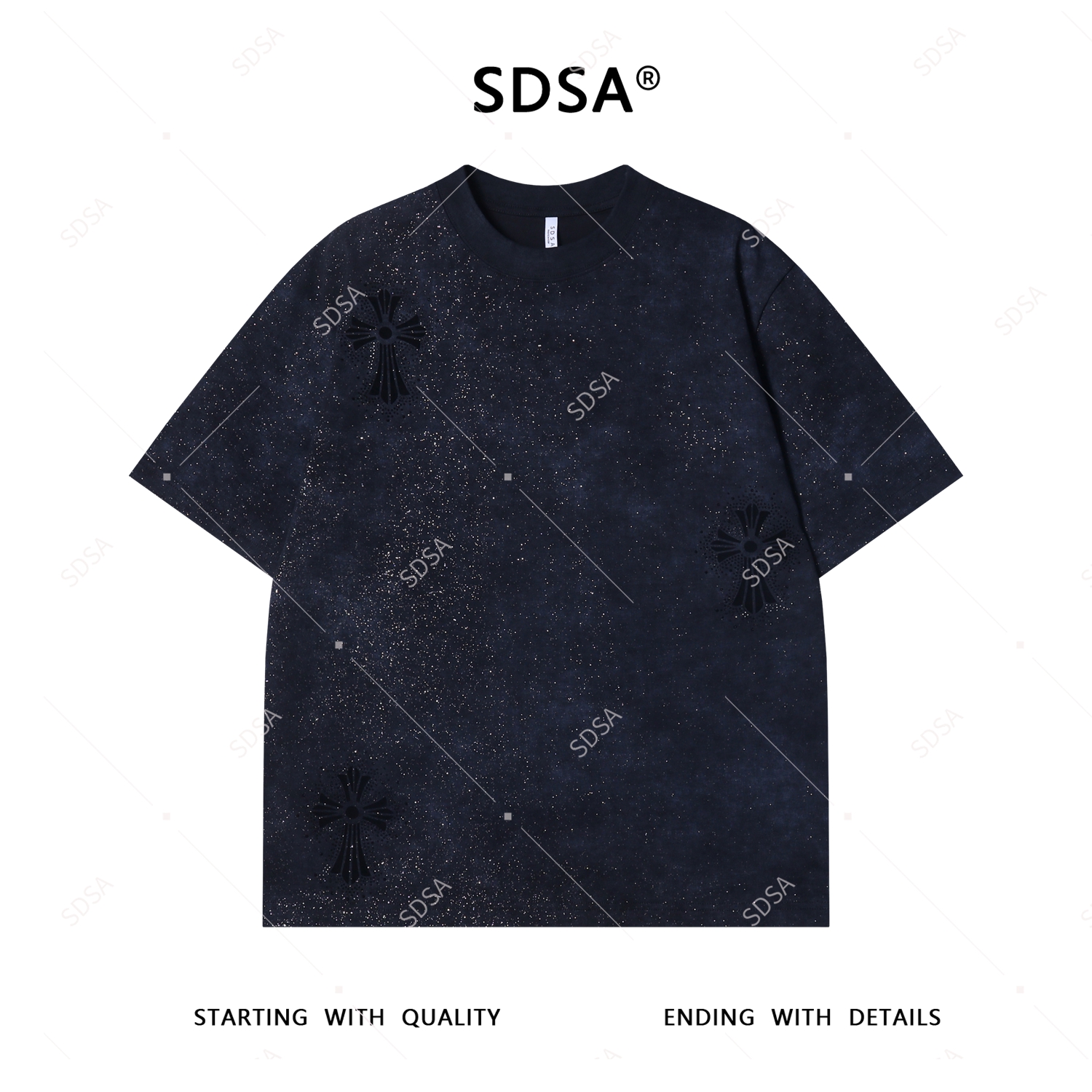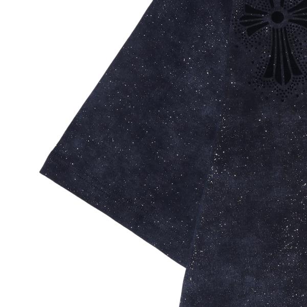 T3832夏季高级感新款男士美式撞色十字印花烫钻短袖T恤重磅宽松上衣