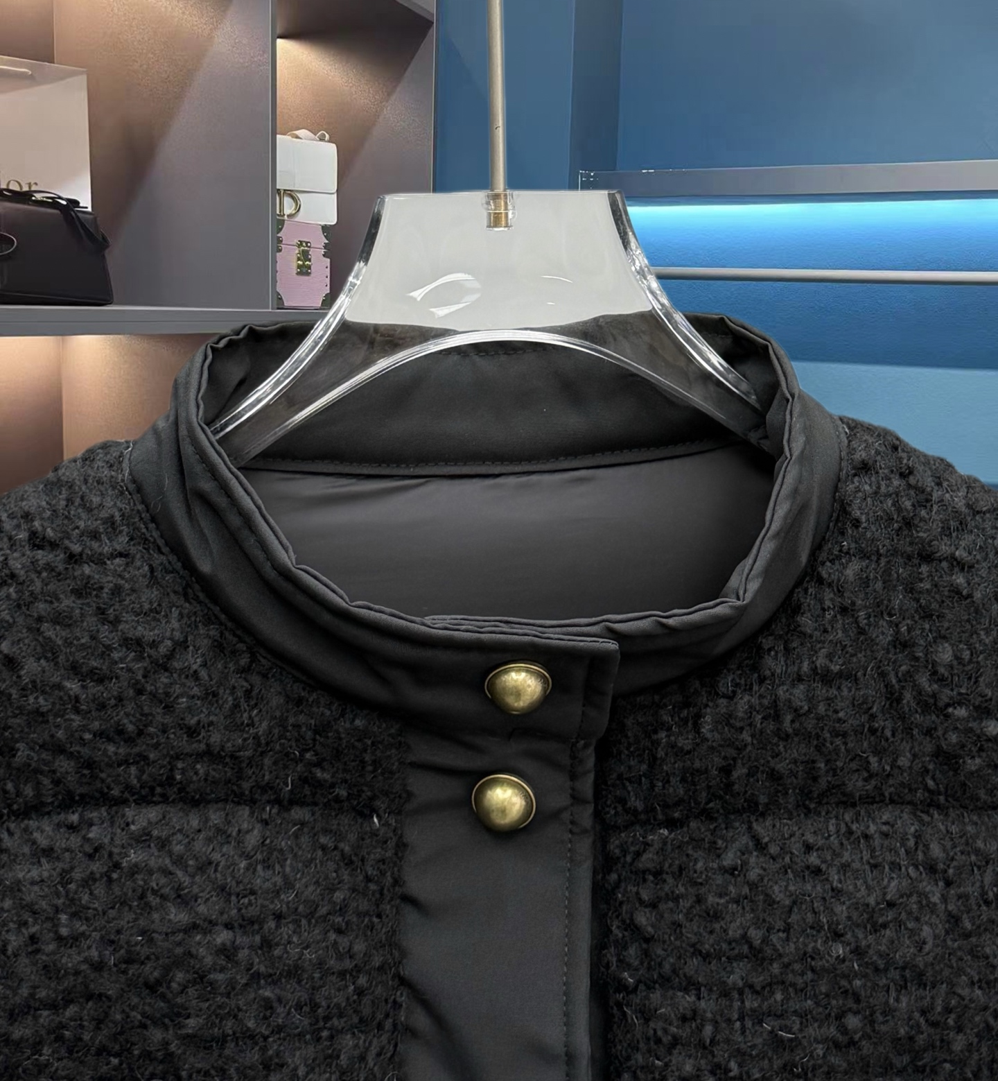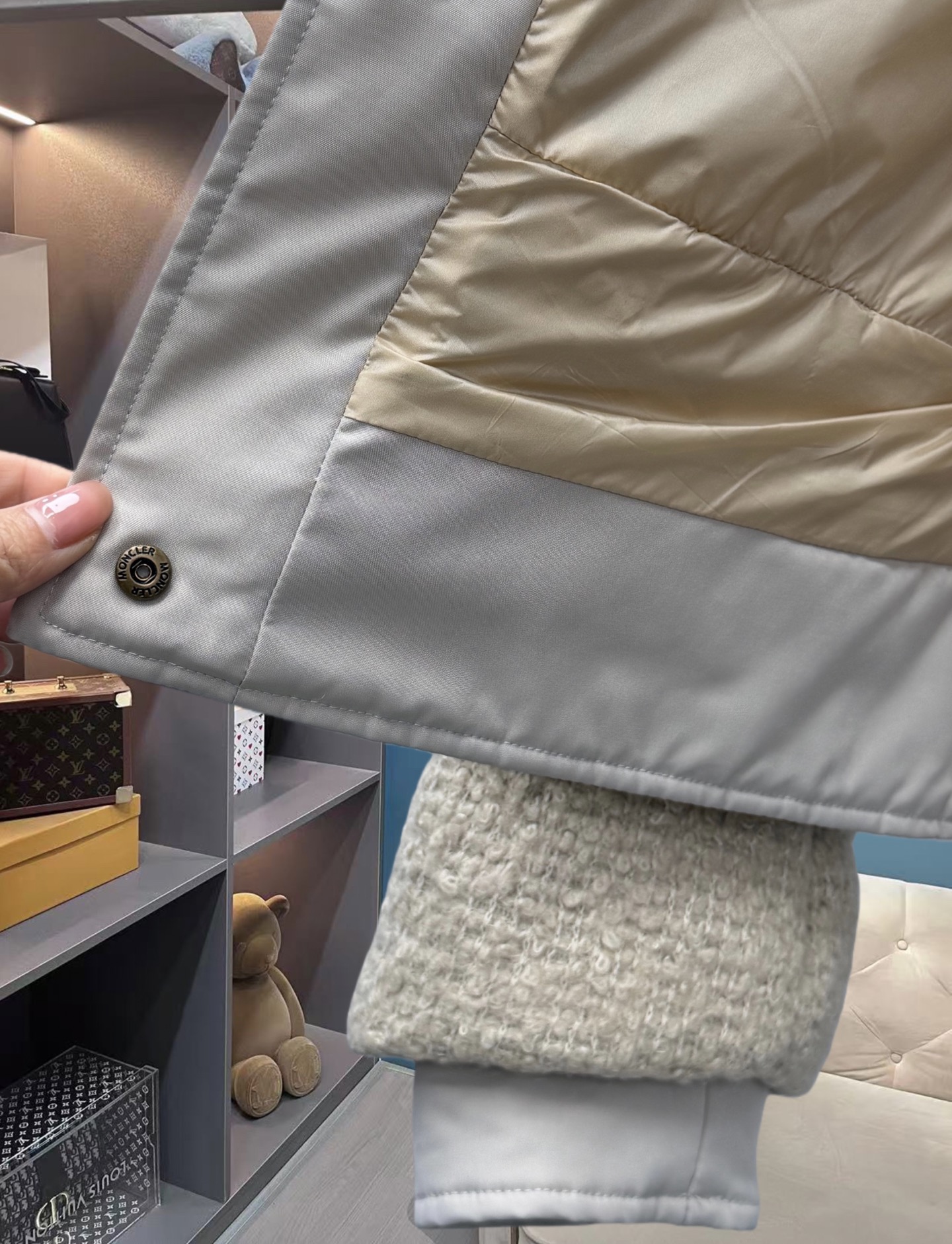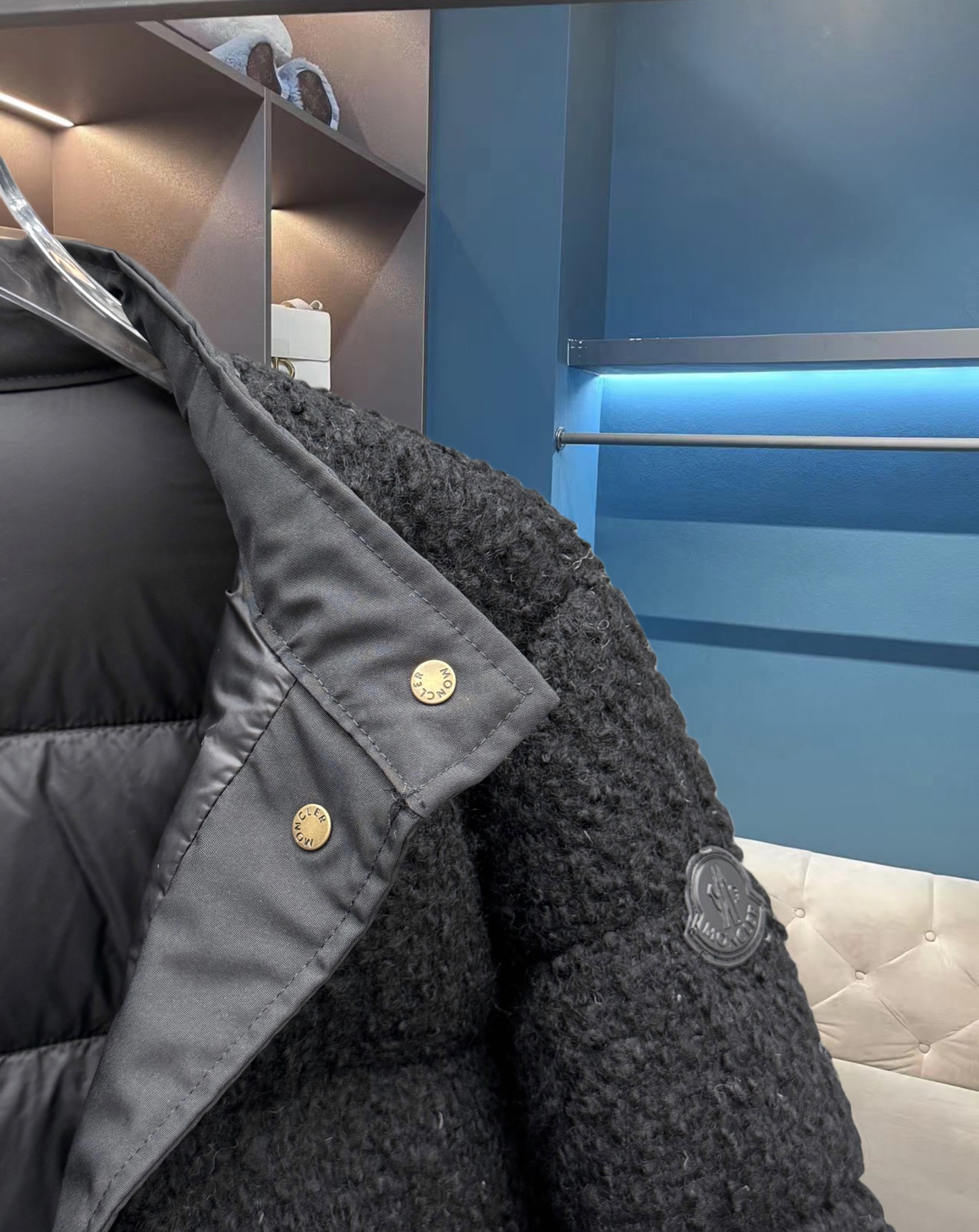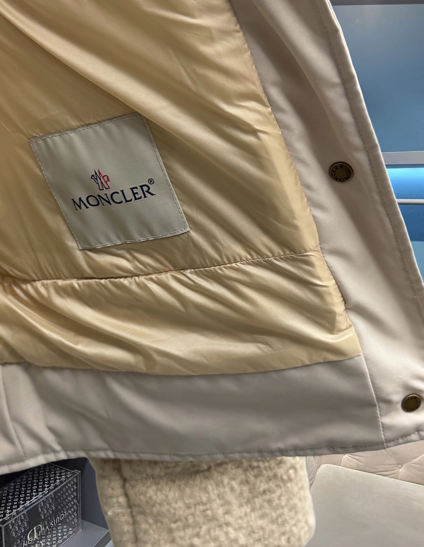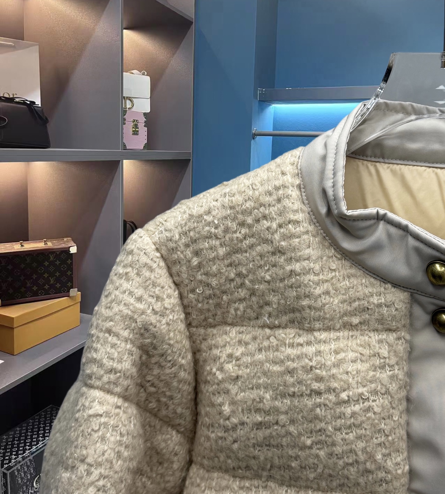 25秋冬新款 M家Blandy女士羊毛混纺毛圈短款羽绒外套 当羽绒邂逅粗花呢|Moncler 演绎“小香风”冬日新章 在保暖与优雅的边界,它以奶白粗花呢织就轻奢肌理,以金属扣与皮质拼接勾勒复古格调,将法式风情注入羽绒内核。 Moncler 标志性的蓬松填充暗藏温暖,短款廓形利落显高,双袋设计兼具实用性与造型感。从都市通勤到周末漫游,它让你在凛冽时节,也能以“小香风”的精致姿态,解锁冬日穿搭的优雅公式(注此款只可换码 不可退换款)