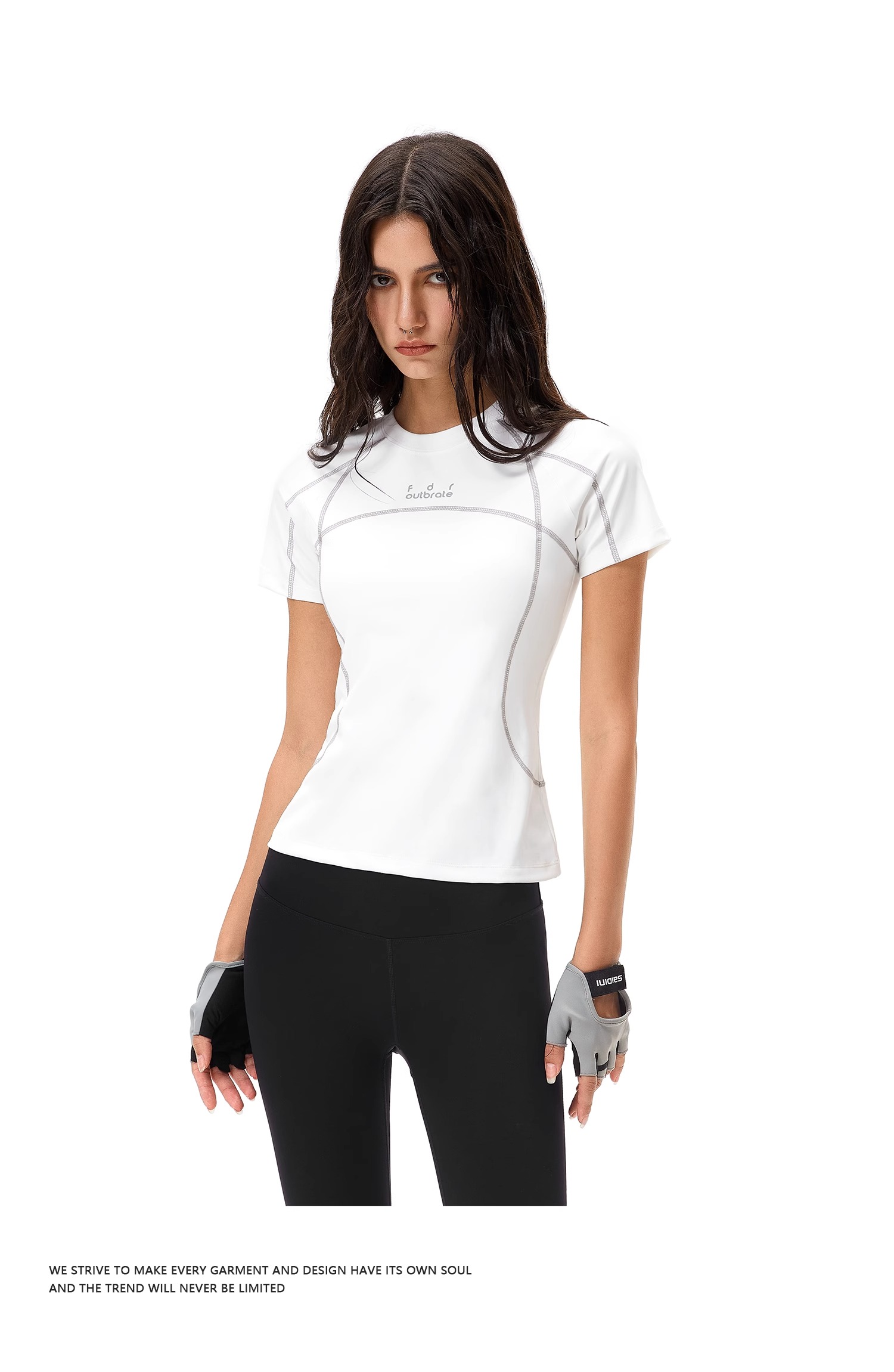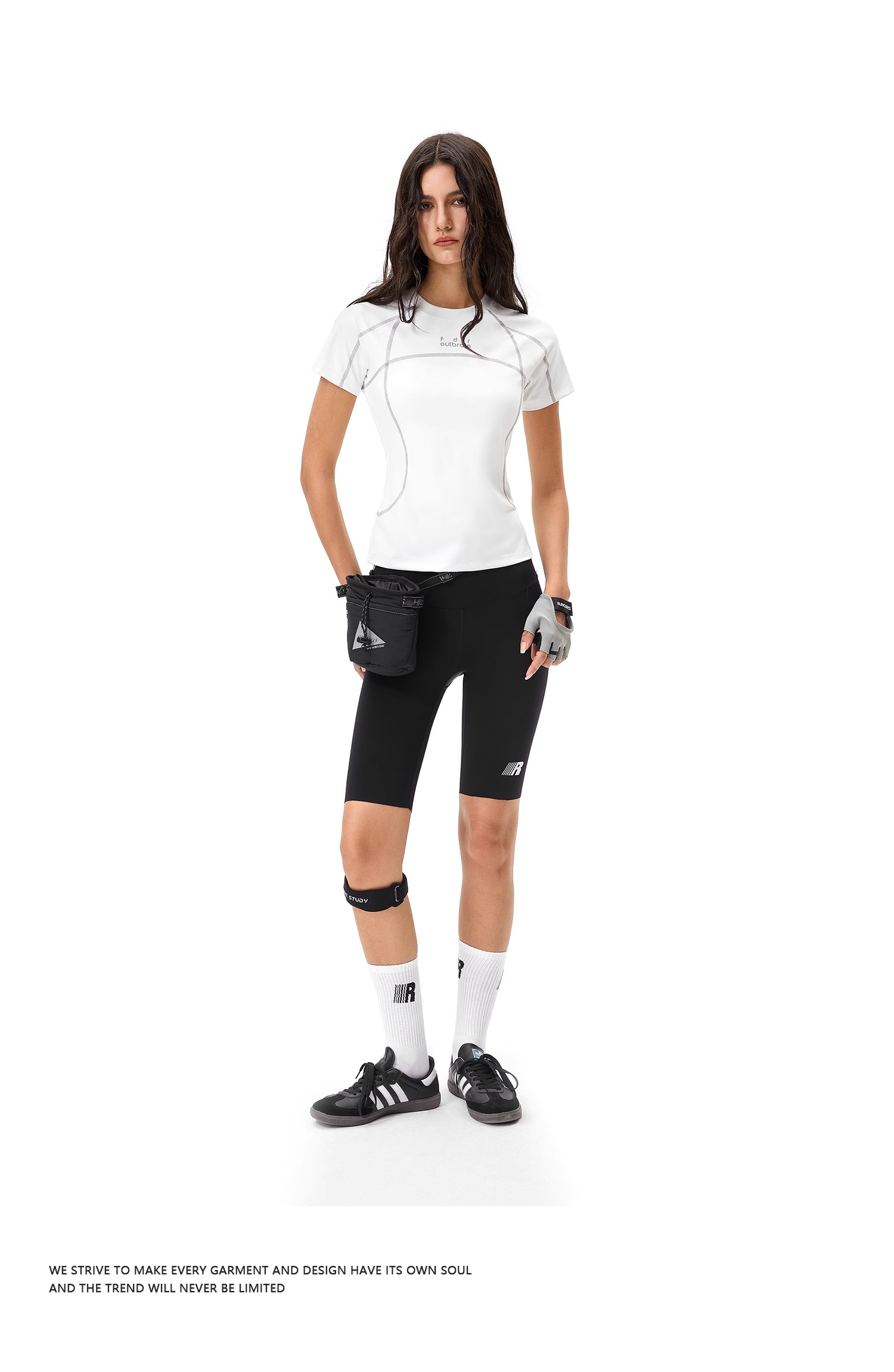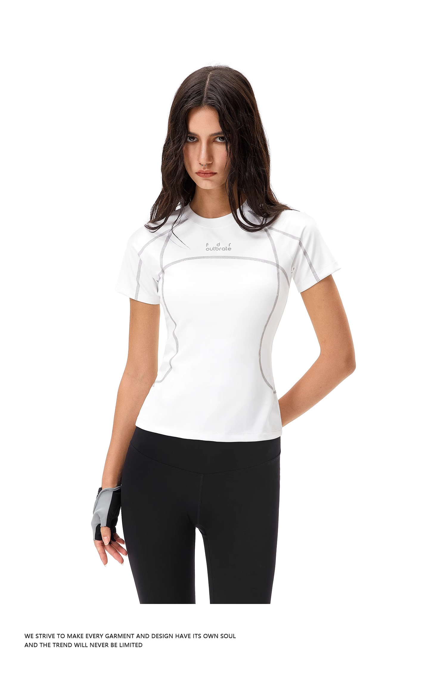 FDR官方店 撞色明线速干运动短袖t恤女夏季辣妹修身显瘦体恤上衣