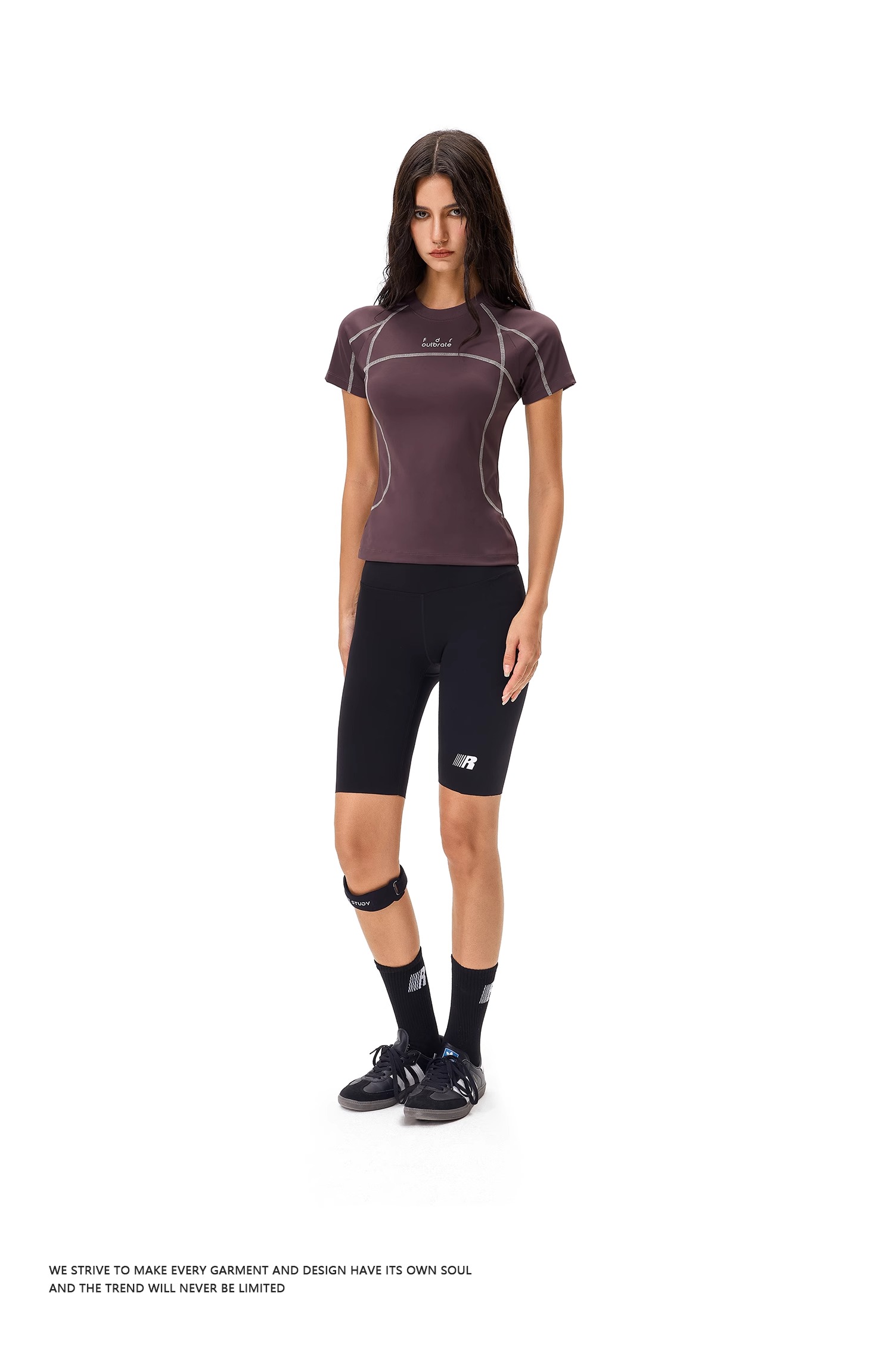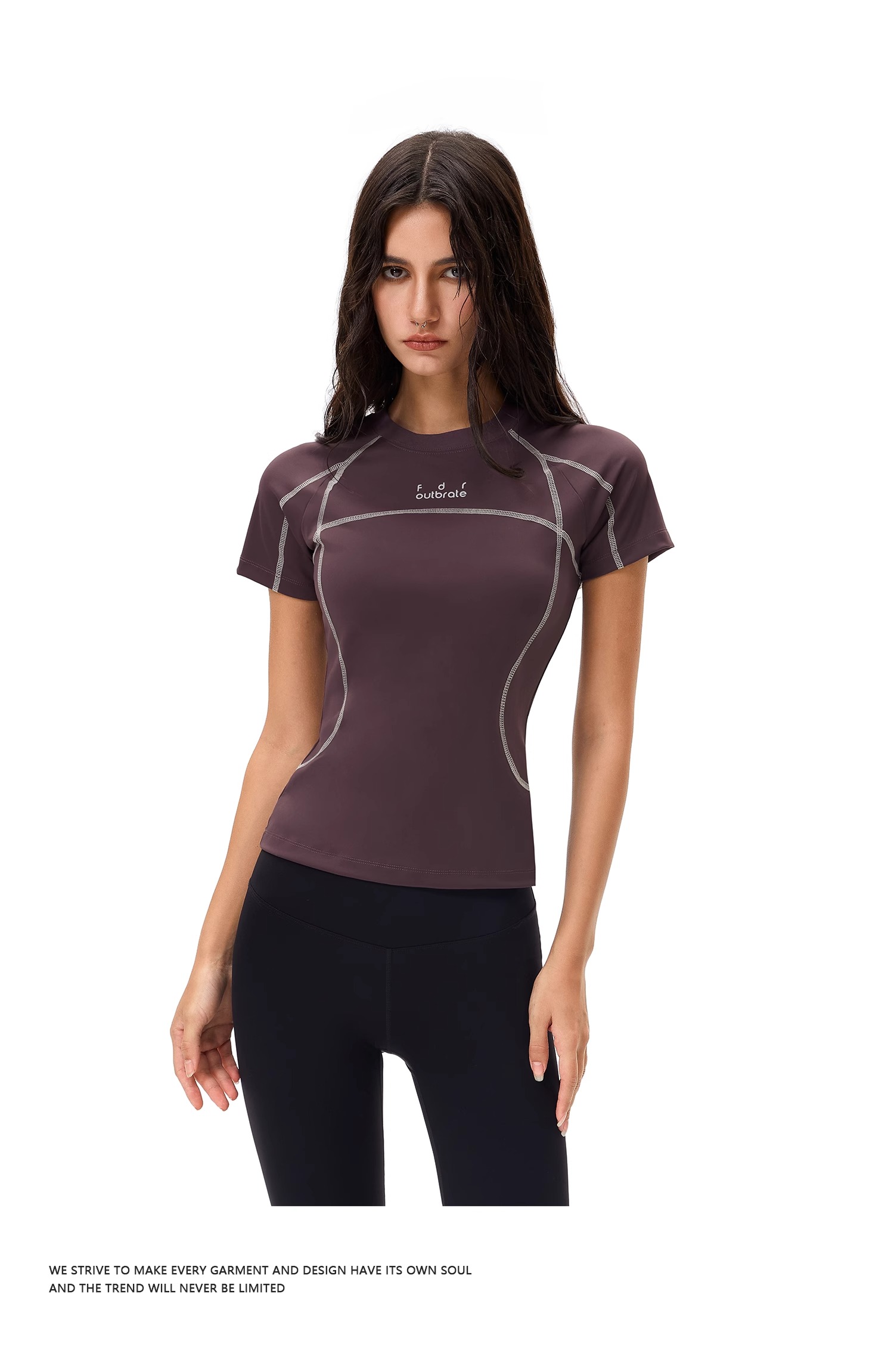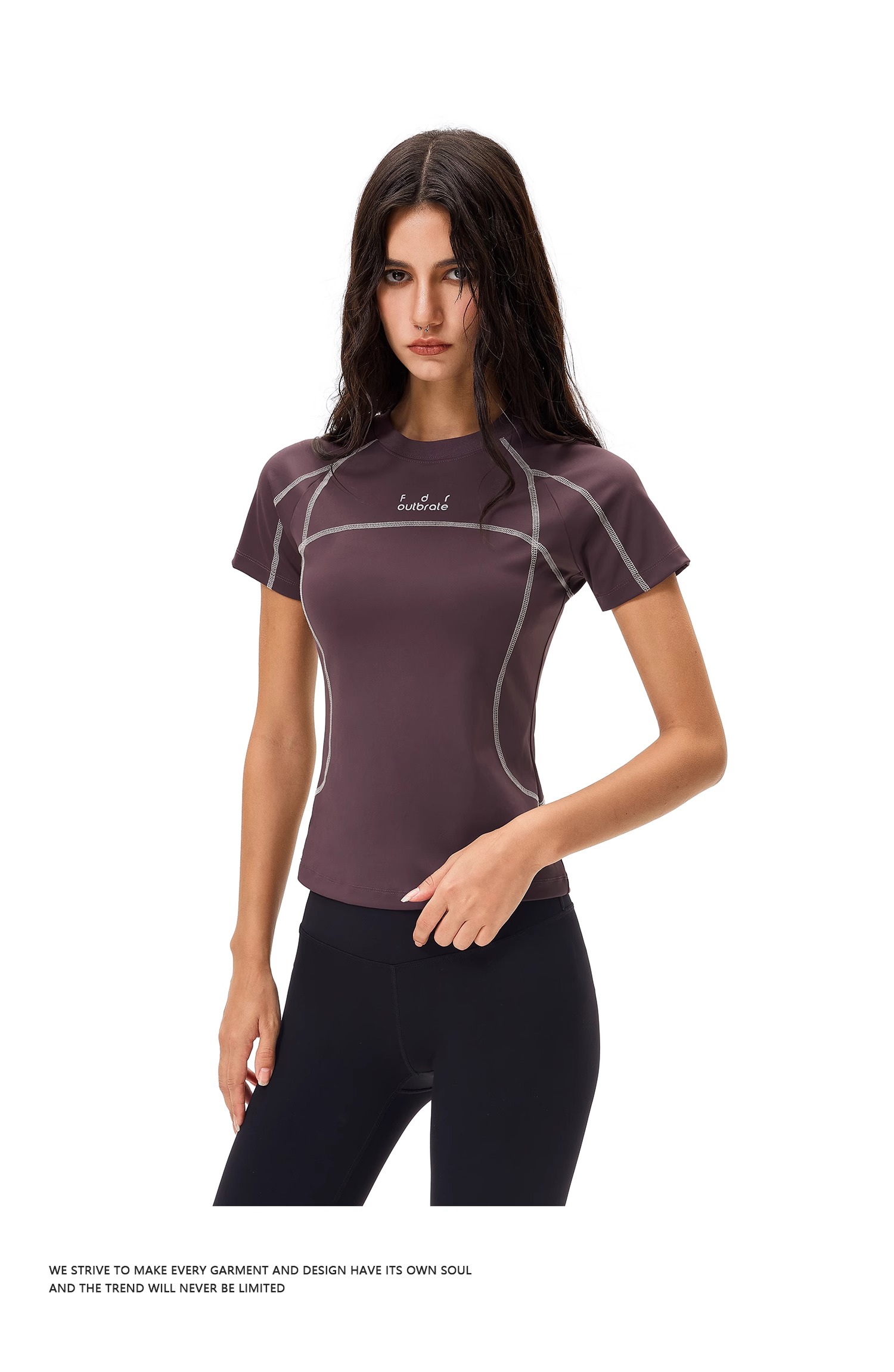 FDR官方店 撞色明线速干运动短袖t恤女夏季辣妹修身显瘦体恤上衣
