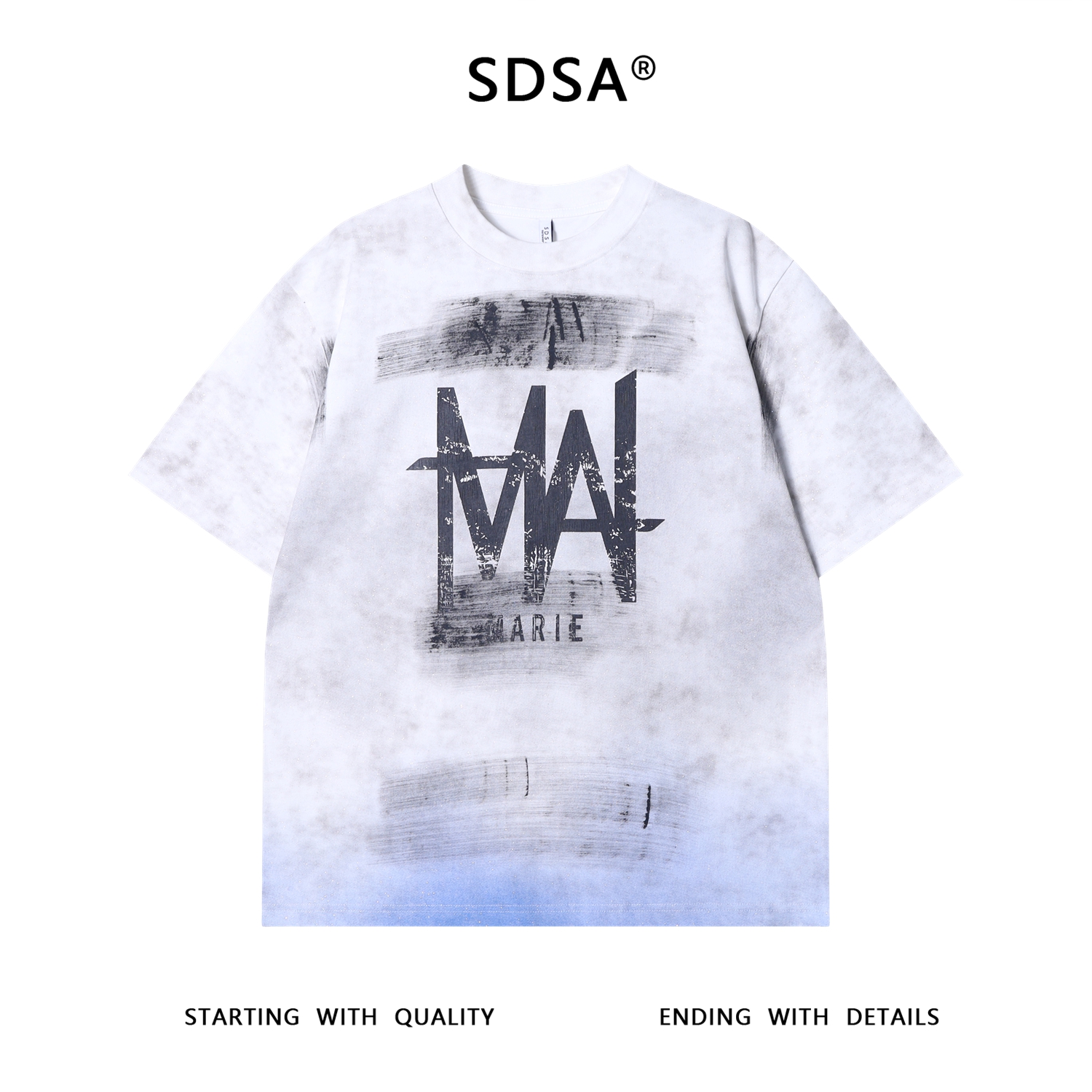 T2639夏季高级感新款扎染绒面印花字母圆领短袖T恤宽松潮流套头上衣