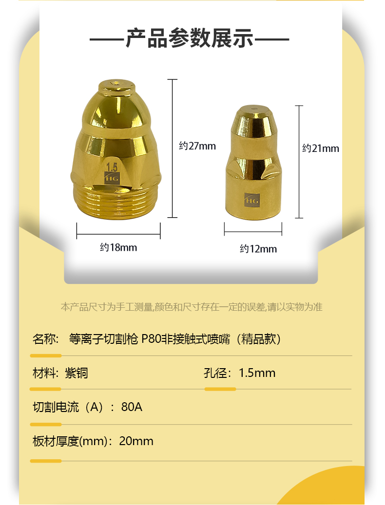 上海沪工等离子切割枪P80【非接触式精品款】P80喷嘴1.5mm+电极 【5对装】【10对装】土豪金